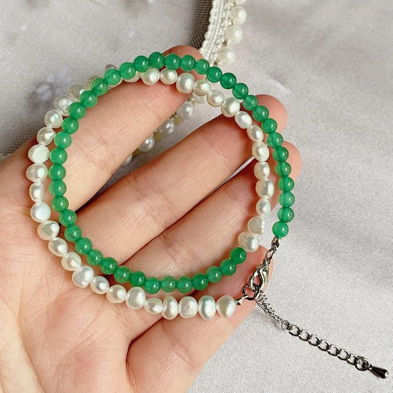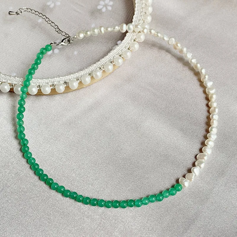 Elegant Natural Freshwater Pearl Necklace for Women Green Aventurine Stone Baoruqe Pearl Choker Wedding Jewelry Femme Collier