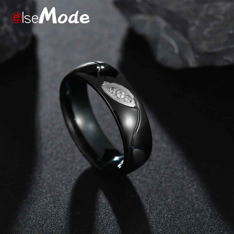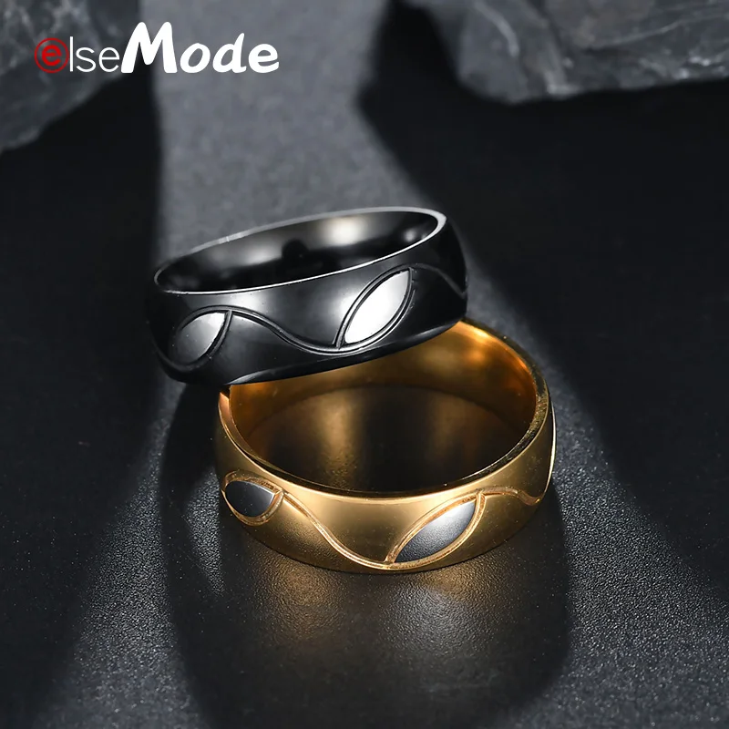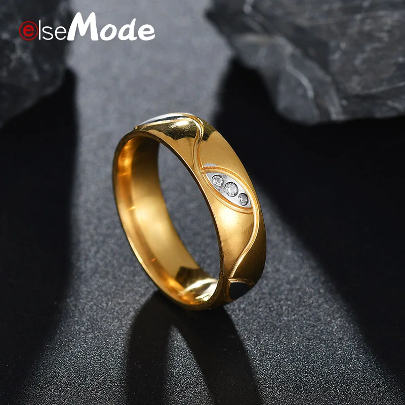 Gold Black Charm Lover CZ Stone Crystal 316L Stainless Steel Wedding Couple Rings 6mm For Men Women Drop Shipping