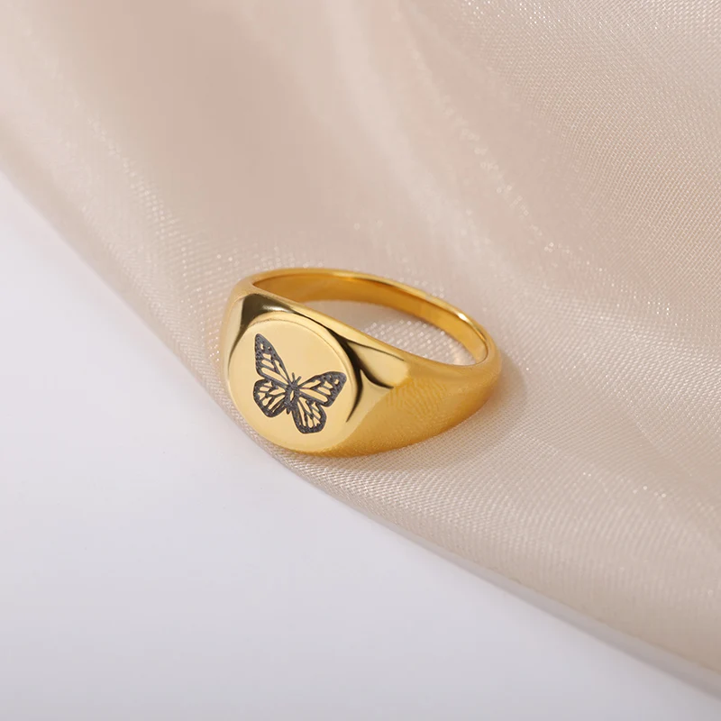 Engraved Butterfly Rings for Women Stainless Steel Wide Chunky Finger Ring 2023 Trend Couple Wedding Aesthetic Jewerly anillos