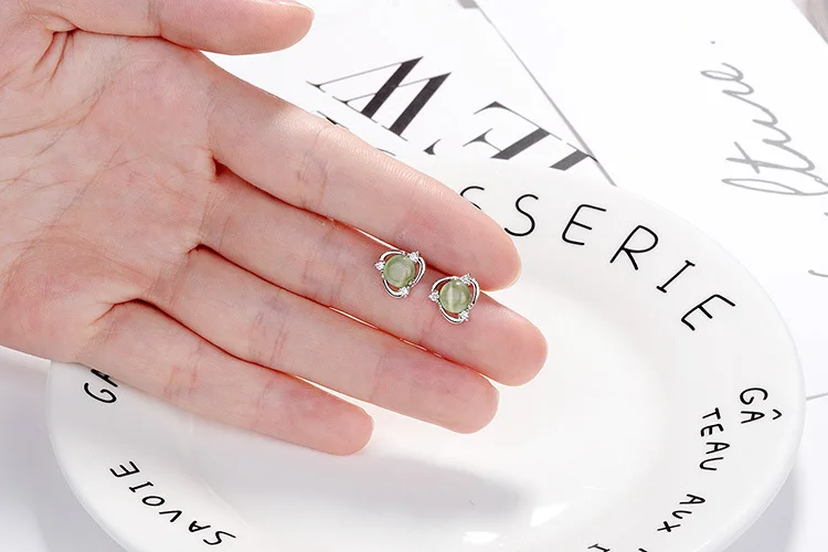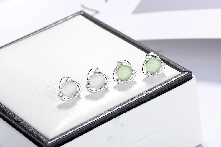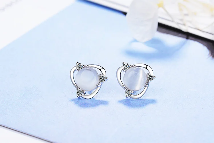 Female 925 Stamp Silver Color Crystal Charm Earrings Wedding Earrings For Women Square Flower Stud Earrings Christmas