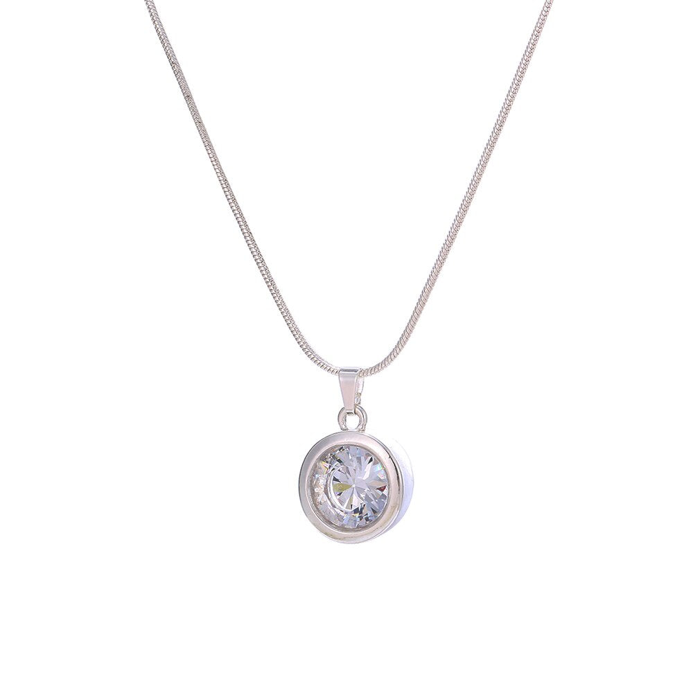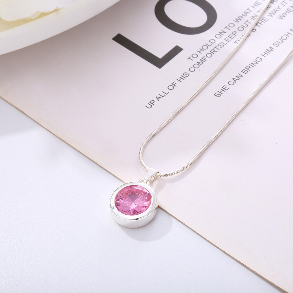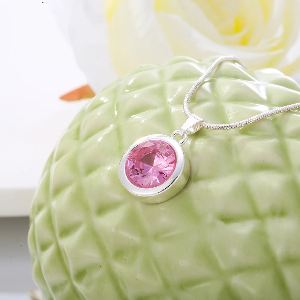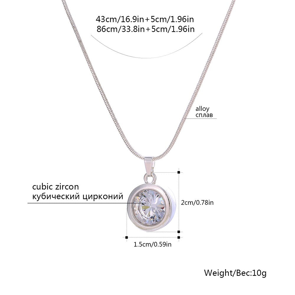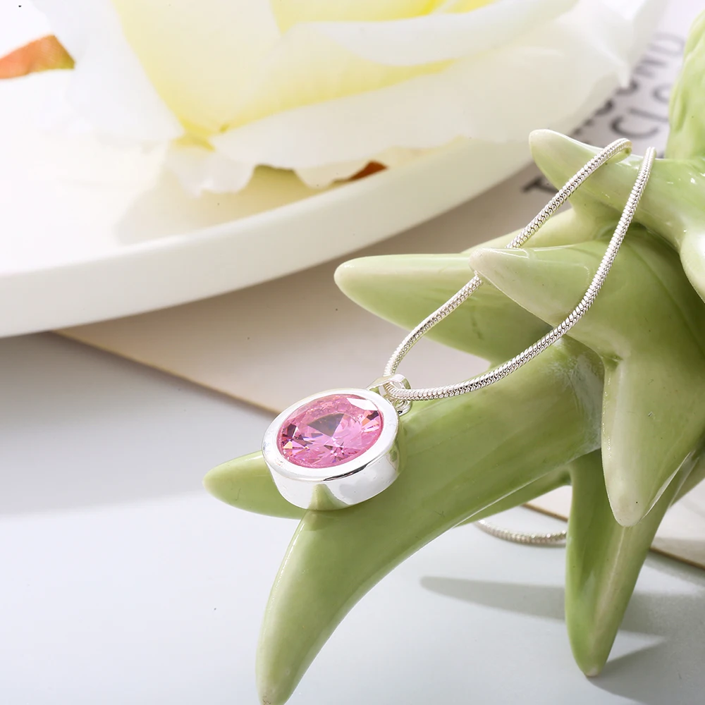 Female Silvery Pink CZ Zircon Big Water Drop Pedants Necklaces Long/Short Snake Chain Necklaces For Women Wedding Jewelry