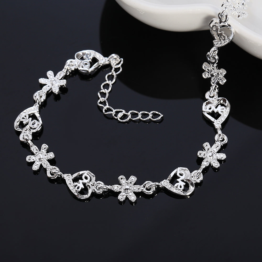 fine 925 sterling silver Bracelet crystal romantic heart flower chain for woman wedding accessories designer jewelry