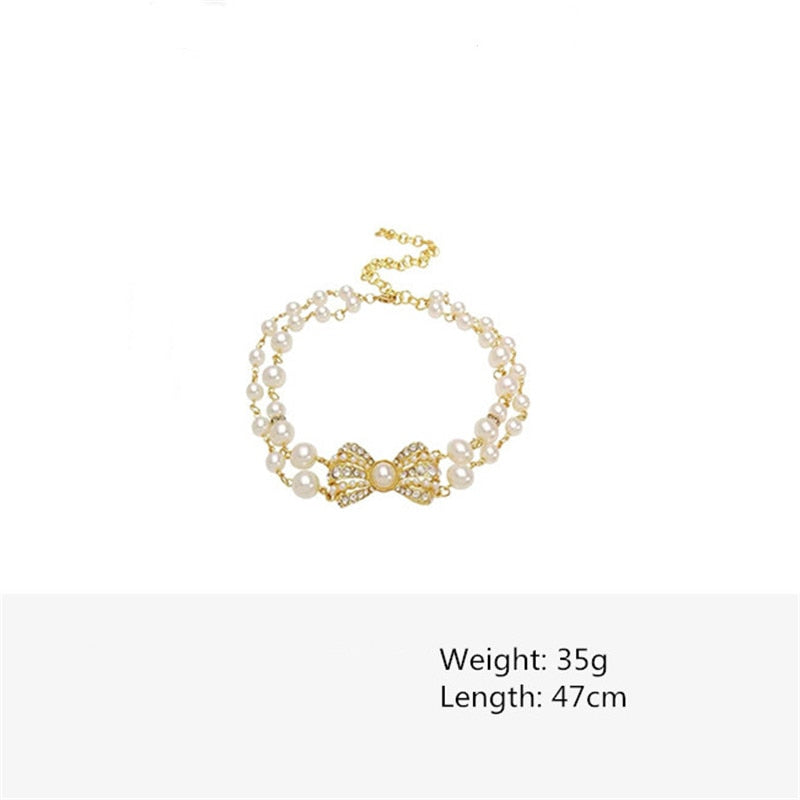 FYUAN Golden Bowknot Rhinestone Choker Necklaces for Women Pearl Necklaces Weddings Bride Jewelry
