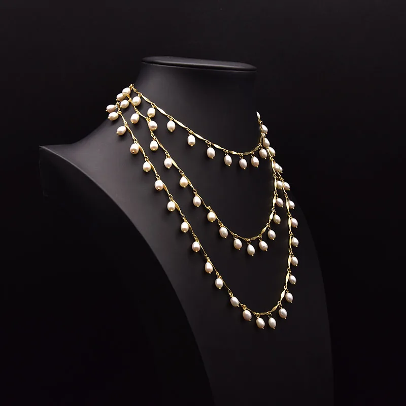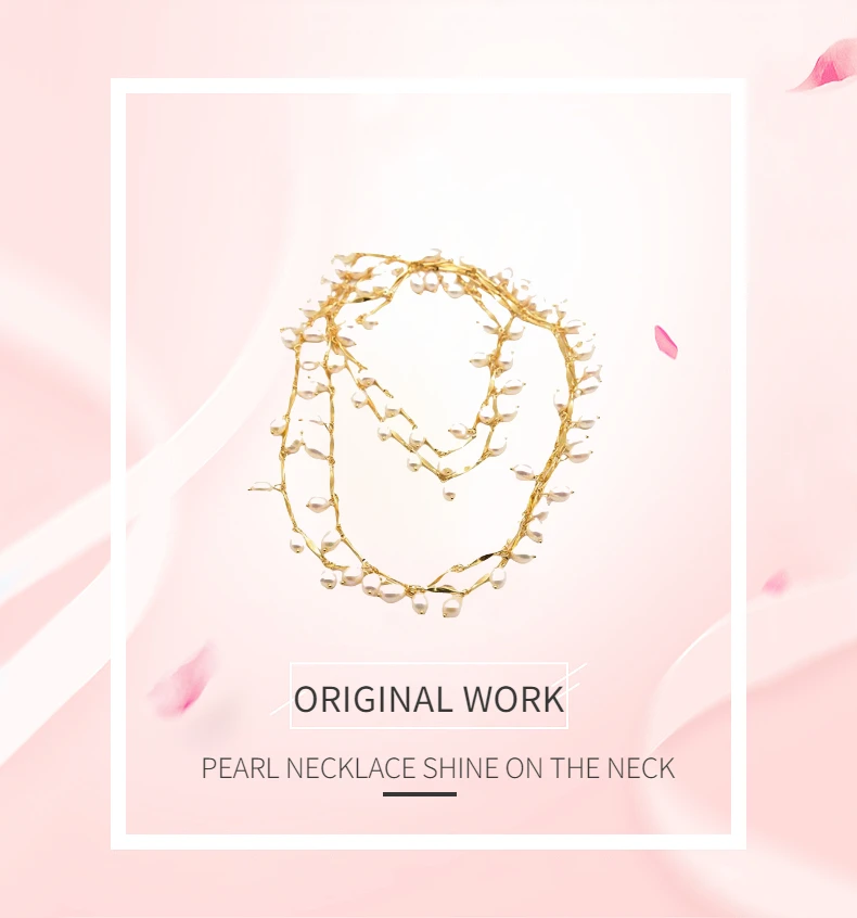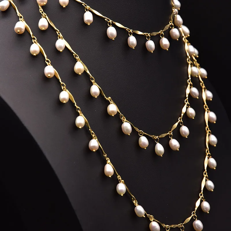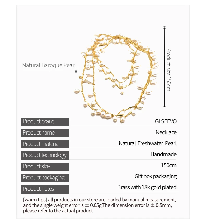 GLSEEVO Natural Freshwater Pearl Long Necklace Women's Wedding Personalized Adjustable Length Chain Jewelry Accessories GN0270
