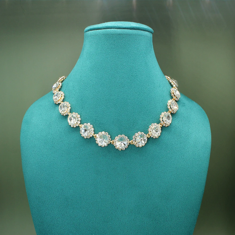Gorgeous Floral Rhinestone Necklace Sweater Chain For Women Punk Choker Temperament Retro Wedding Jewelry Gift