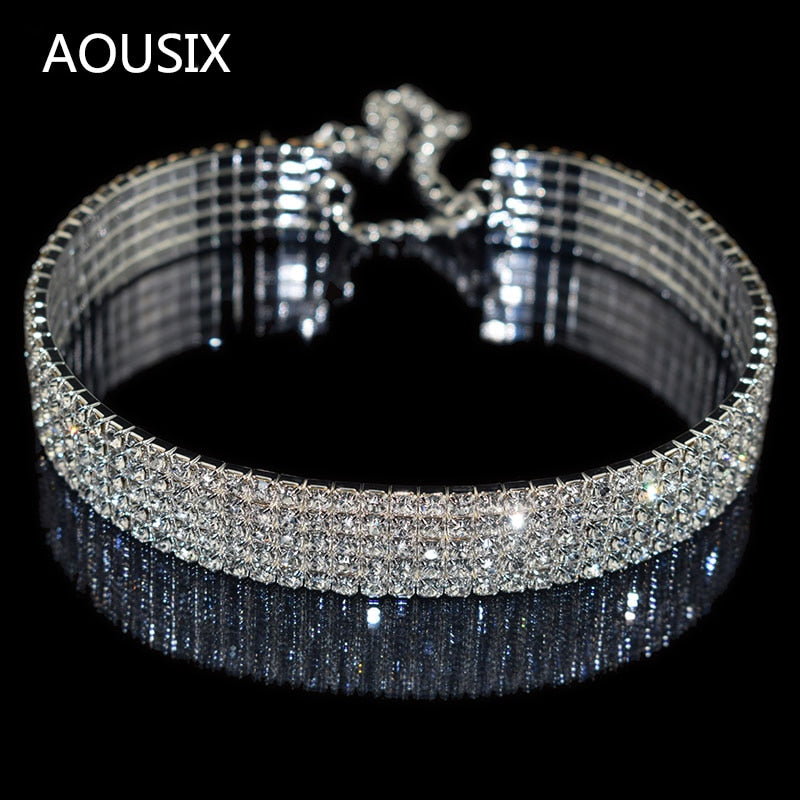 Gothic stretchable elastic force Crystal Choker Necklaces Charms Rhinestone Neckless Chocker For Women Wedding Jewelry