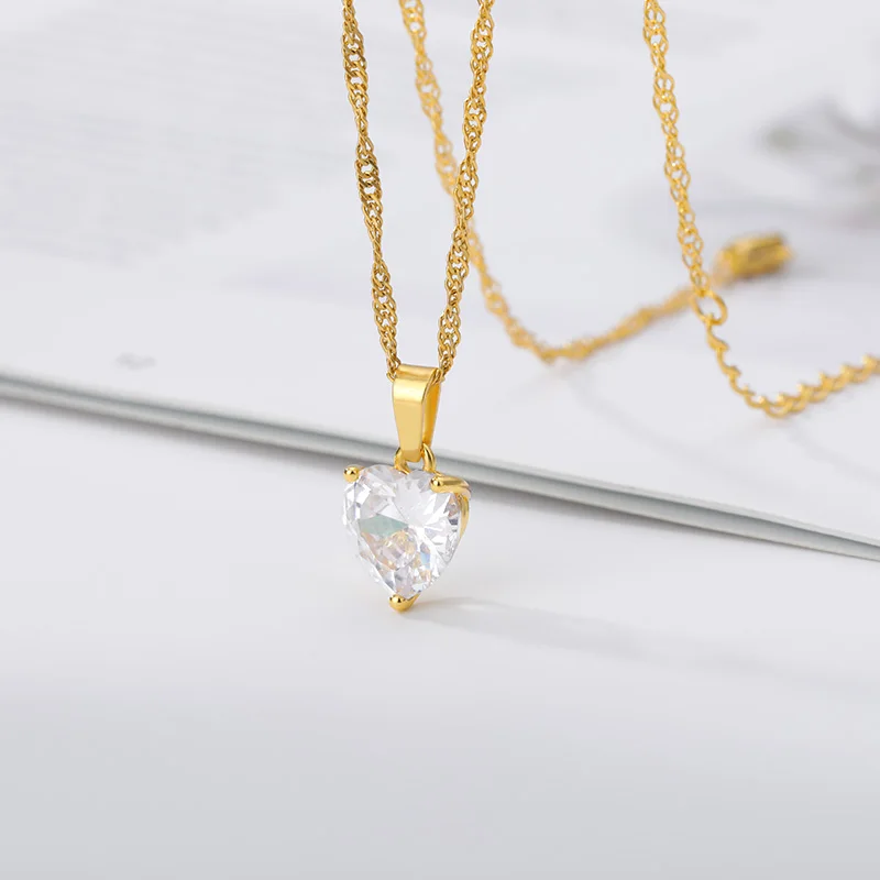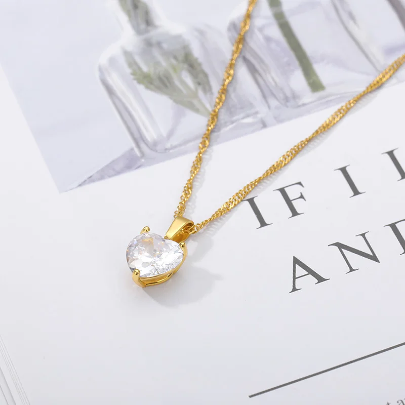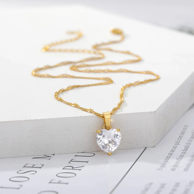 Heart Necklaces for Women Stainless Steel Gold Zircon Chain Heart Lover Necklace Clavicle Choker Valentine Jewelry Wedding Gift