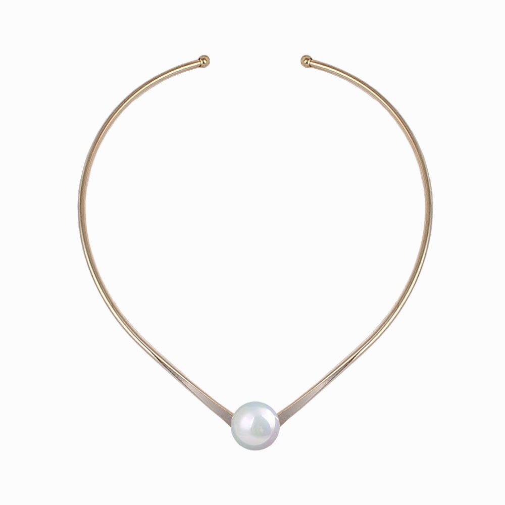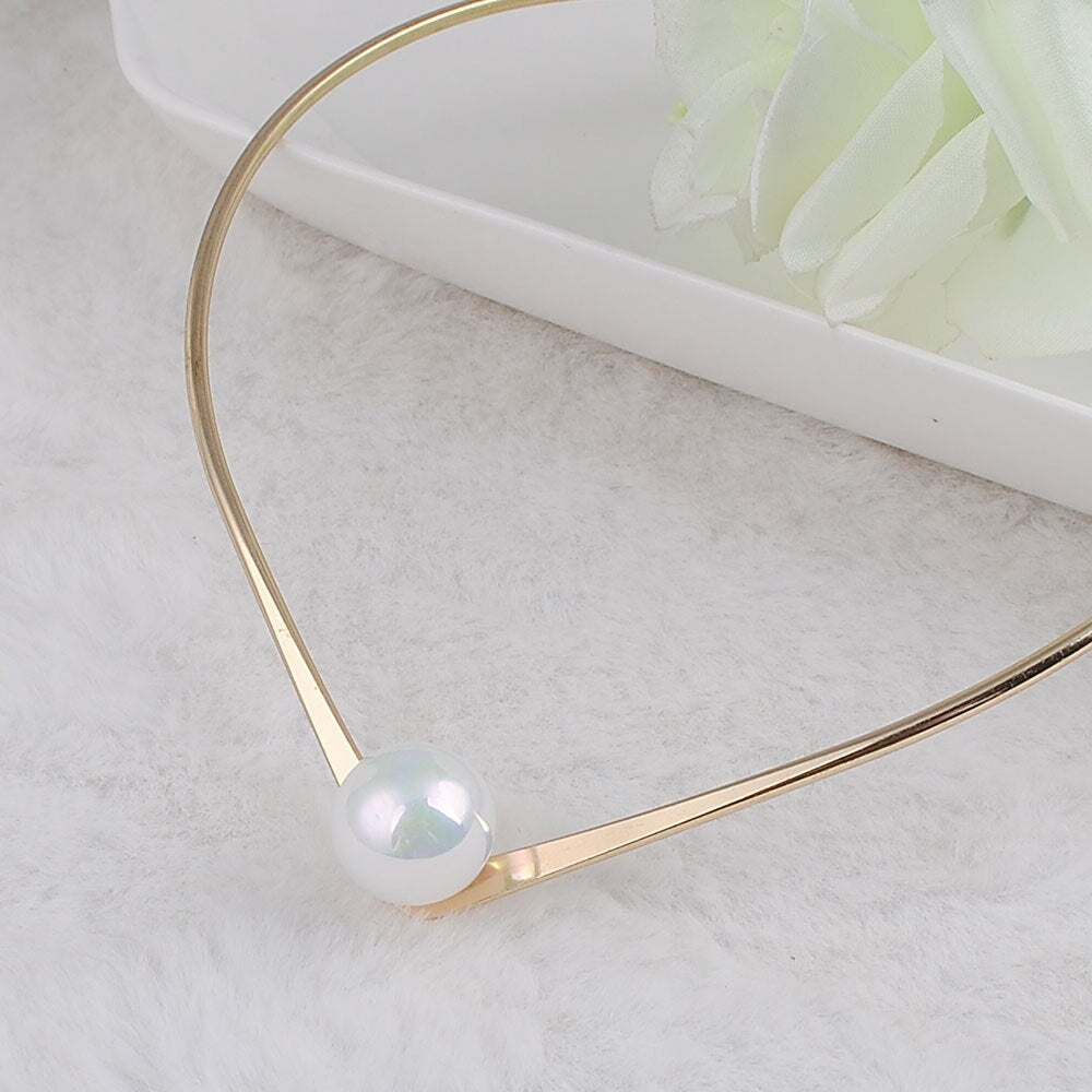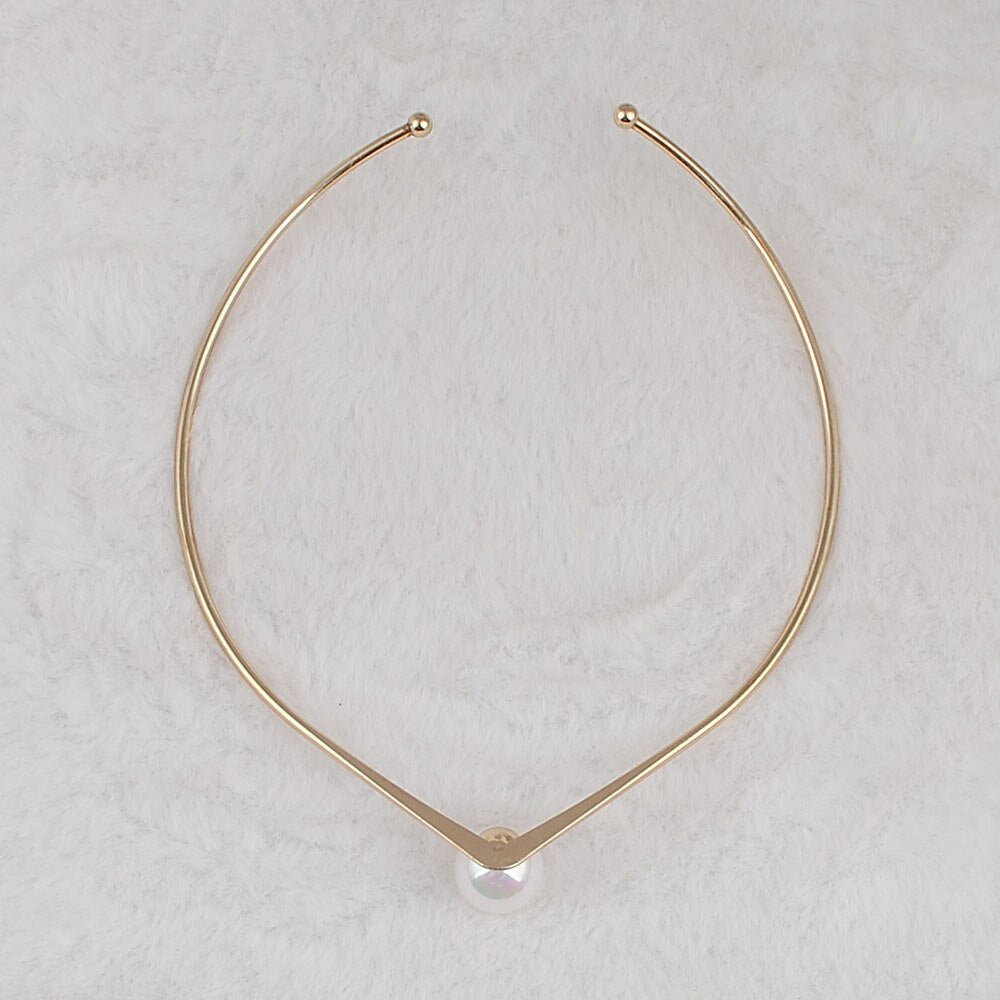 Jewelry Simple V Design Torques Choker Necklace for Women Girl Big Pearl Wedding Necklace