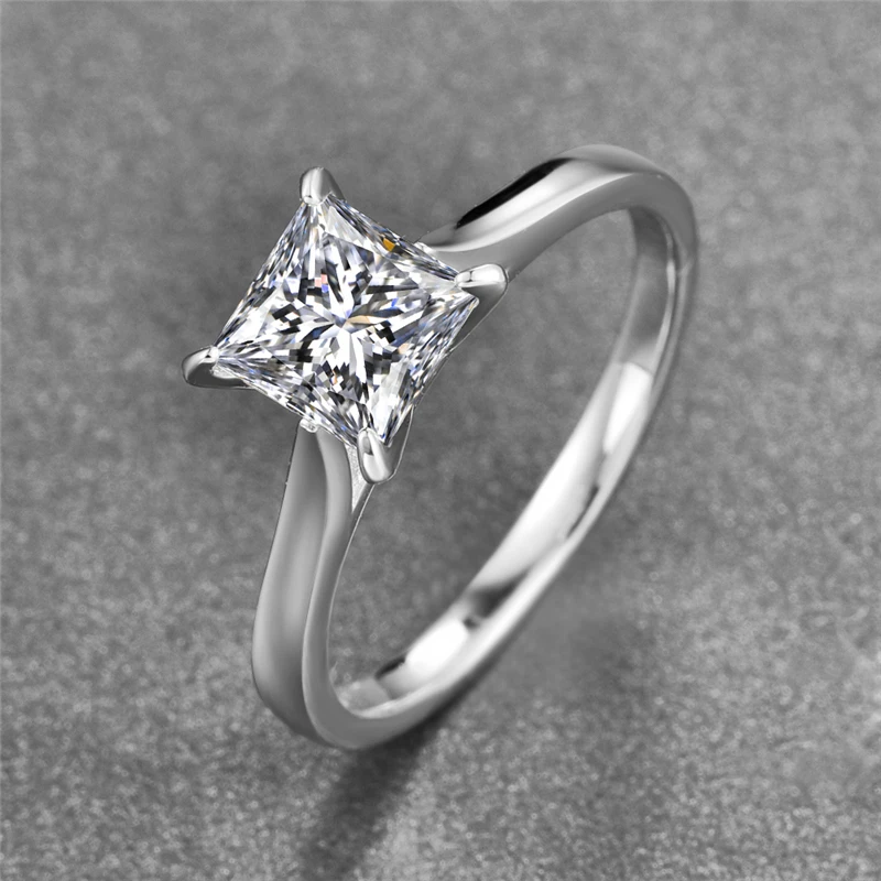 Simple 6*6mm Square White Zircon Rings Sterling Silver S925 Women's Fine Jewelry Wedding Engagement Valentine's D Gift