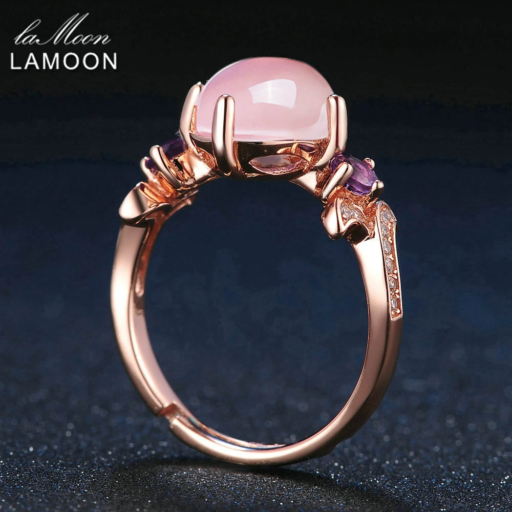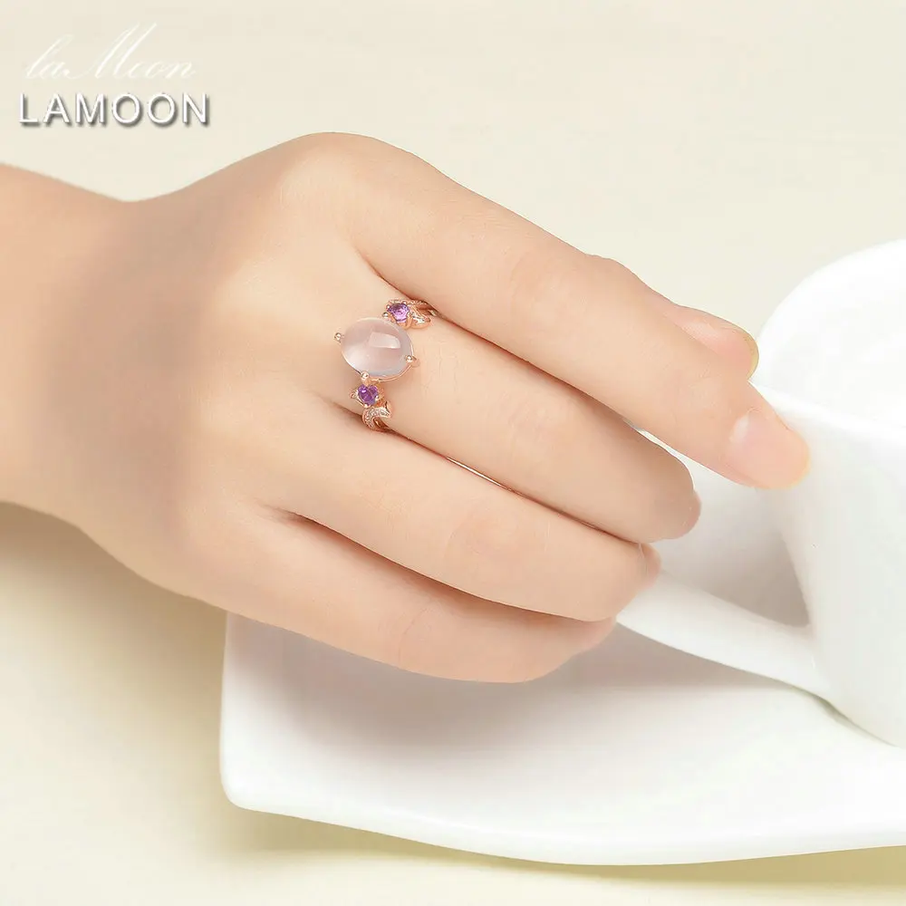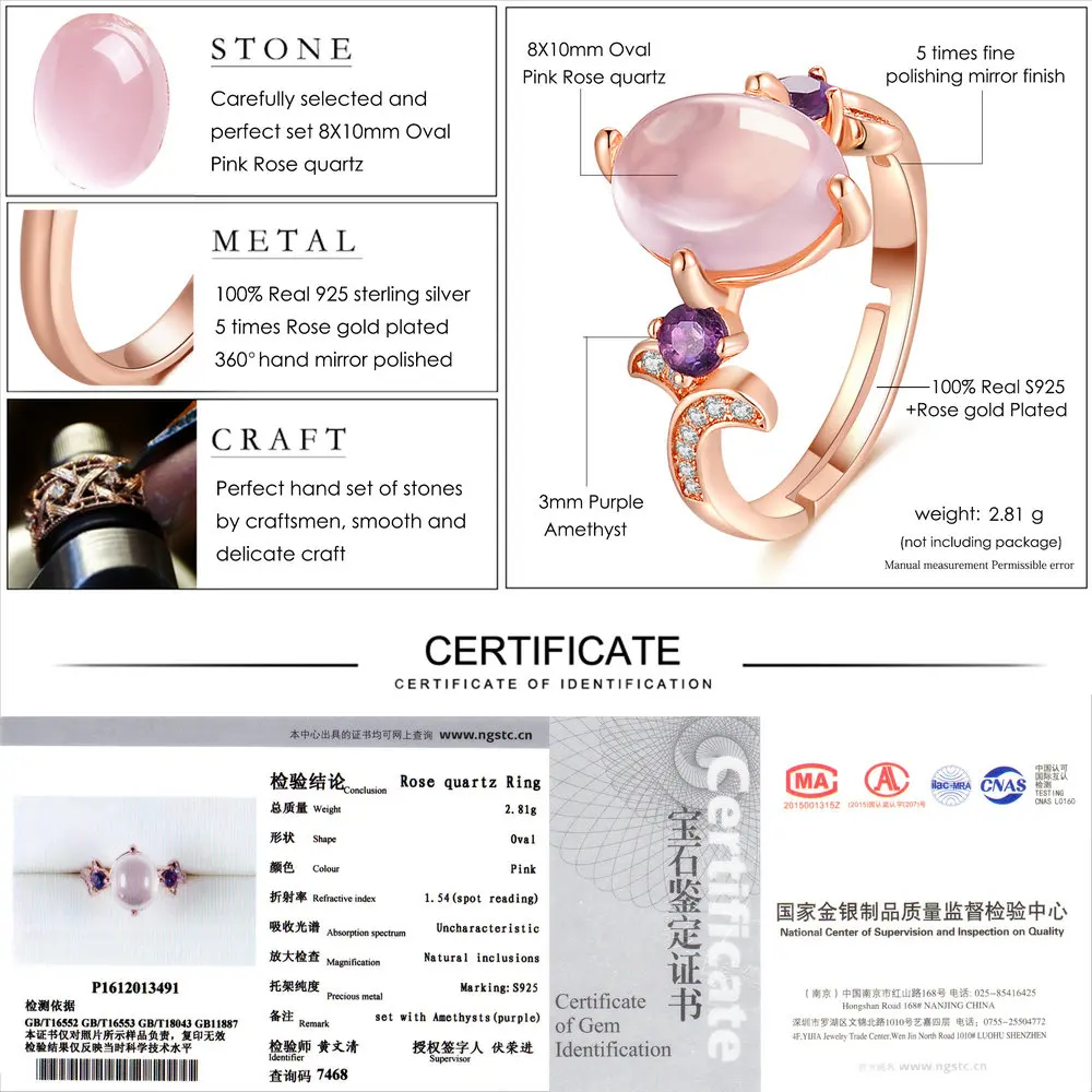 8x10mm Oval Rose Quartz Adjustable Rings 925 Sterling Silver Amethyst Gemstone Romantic Wedding Band Ring Fine Jewelry