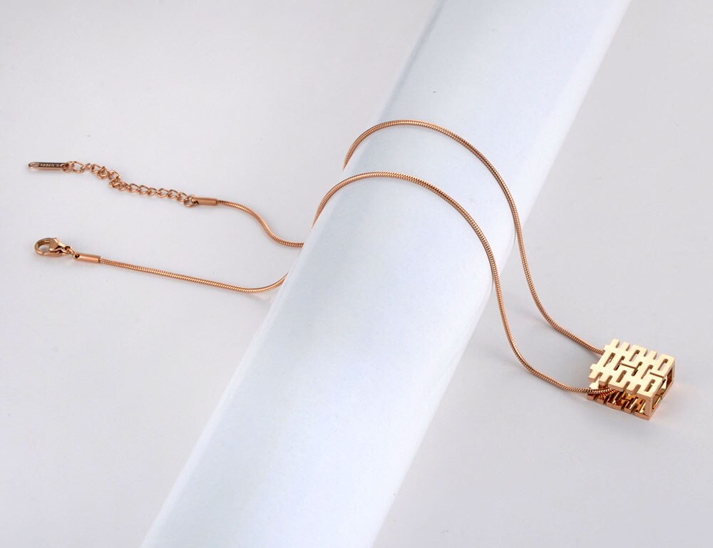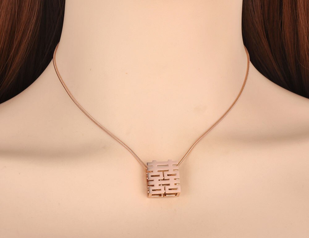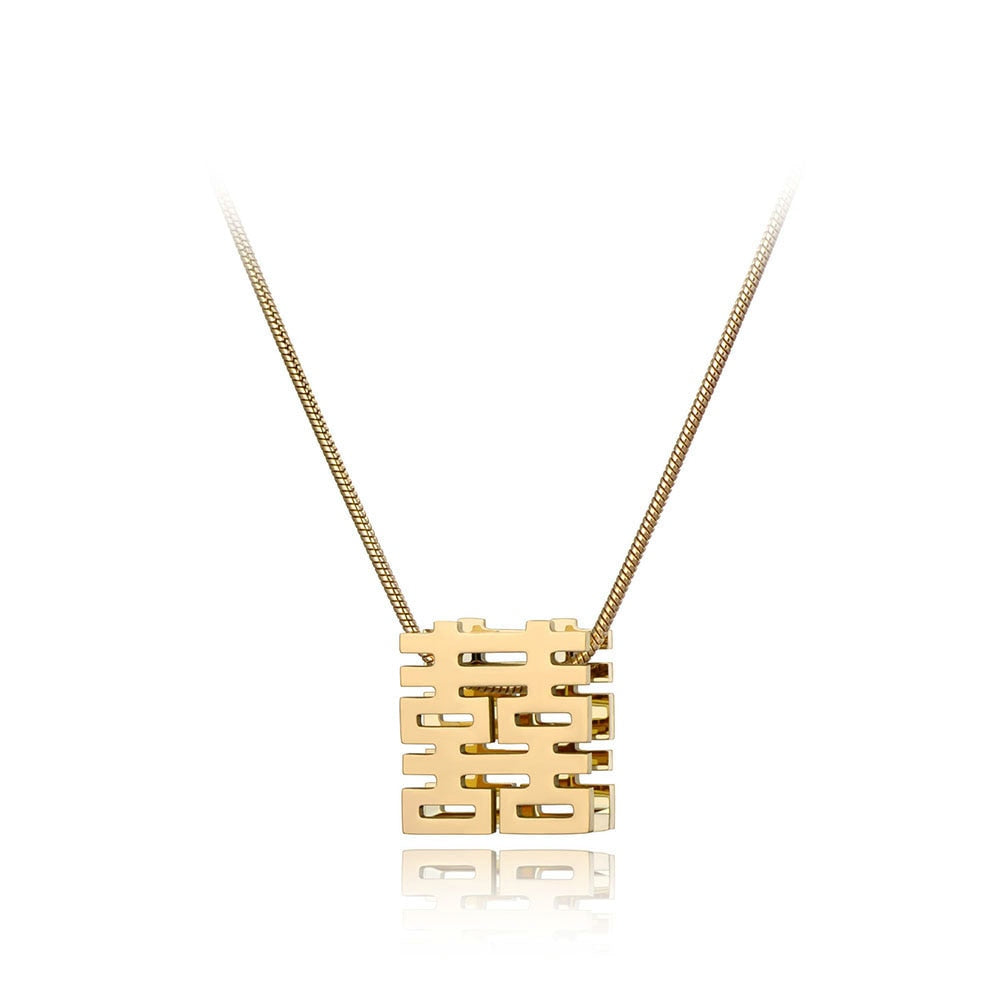 Lokaer Stainless Steel Chinese National Style Double Happiness Pendant Necklaces For Women Girls Ethnic Wedding Necklace N19209