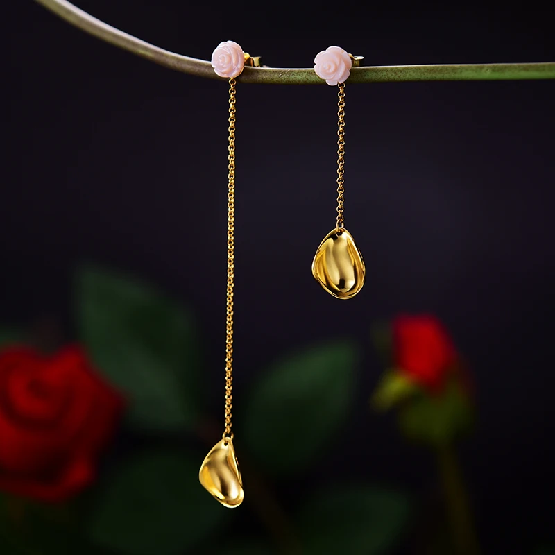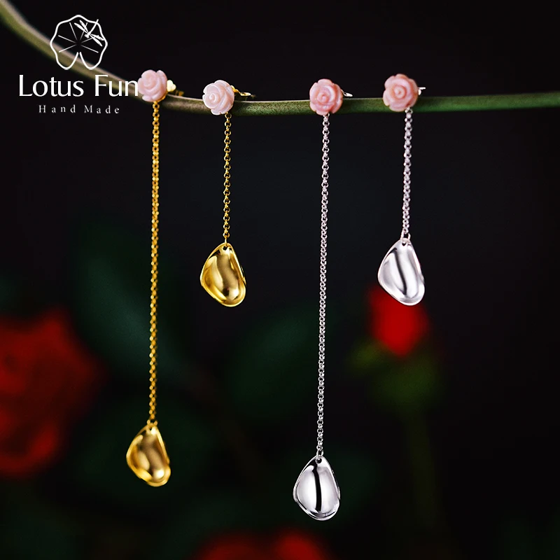 925 Sterling Silver Earrings for Women Silver Rose Flower Long Tassel Earring for Women Wedding Irregualr Drop Earring
