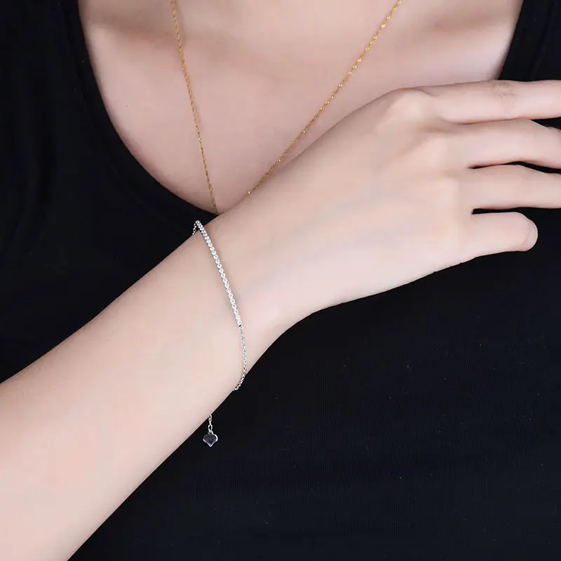 Lovely Solid 14Kt White Gold Diamond Wedding Bracelet for Women Birthd Fine Jewelry Gift Real Stone