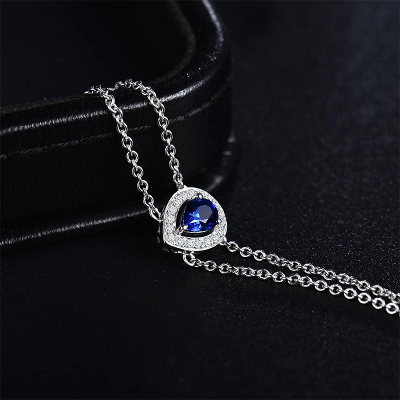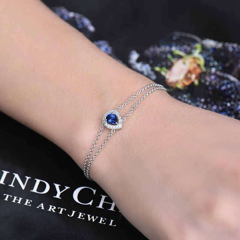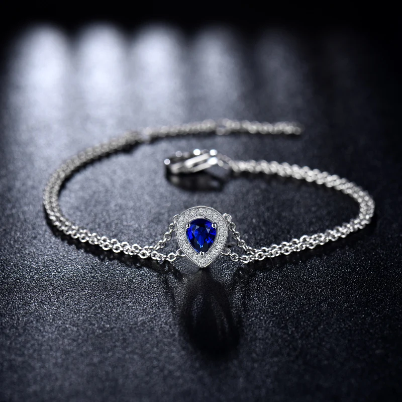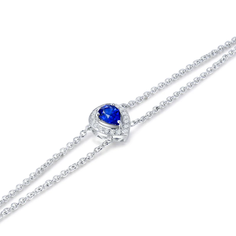 Luxury Solid 18K White Gold Blue Pear Sapphire Wedding Diamond Bracelet for Women Christmas Gift