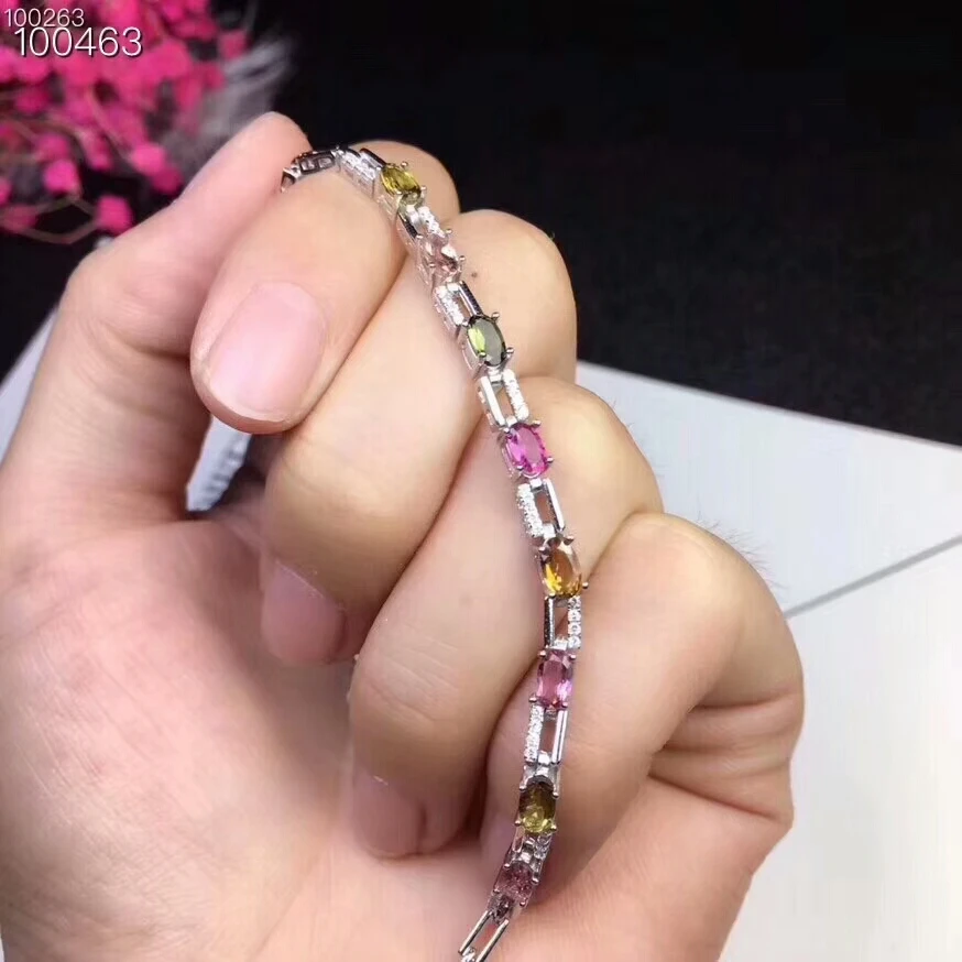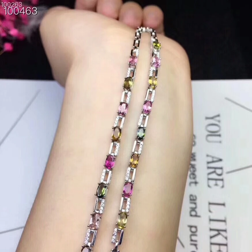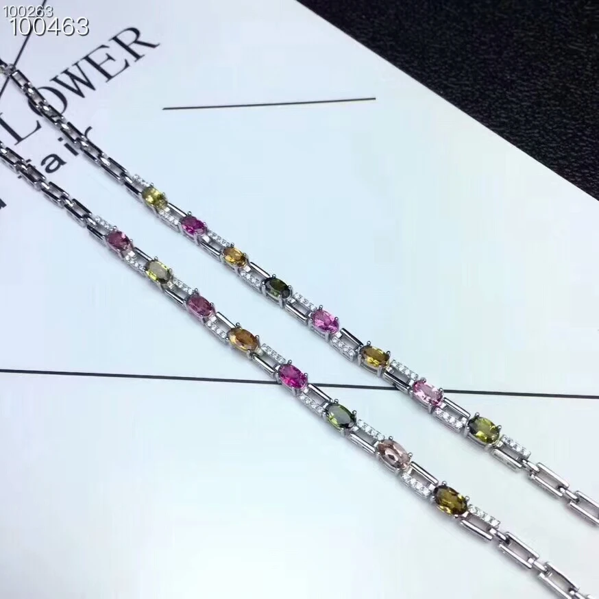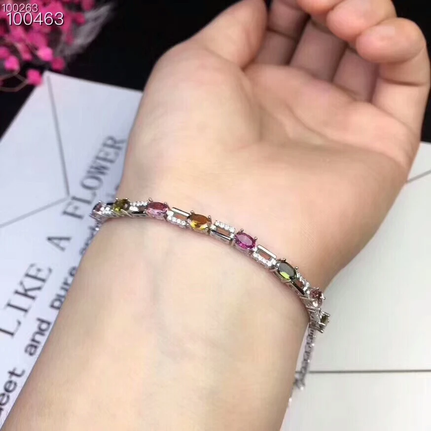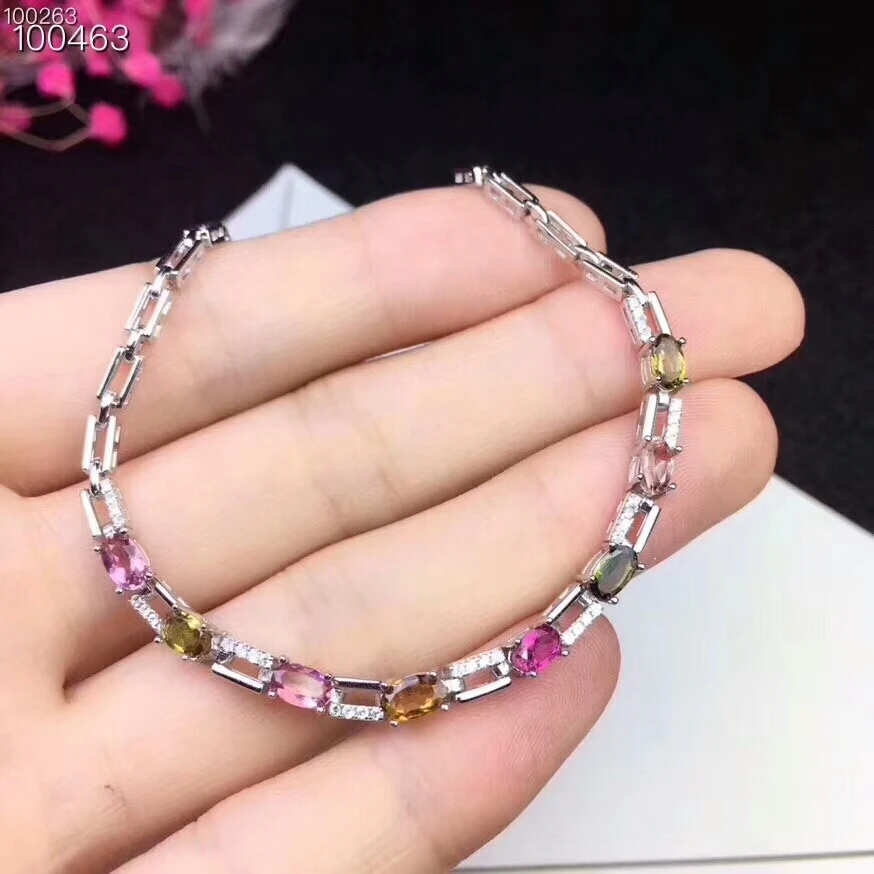 [MeiBaPJ] 925 Sterling Silver Natural Tourmaline Gemstone Bracelet for Women Fine Bangle Wedding Charm Jewelry