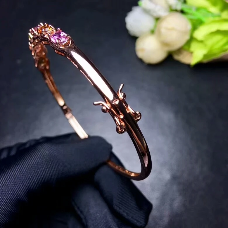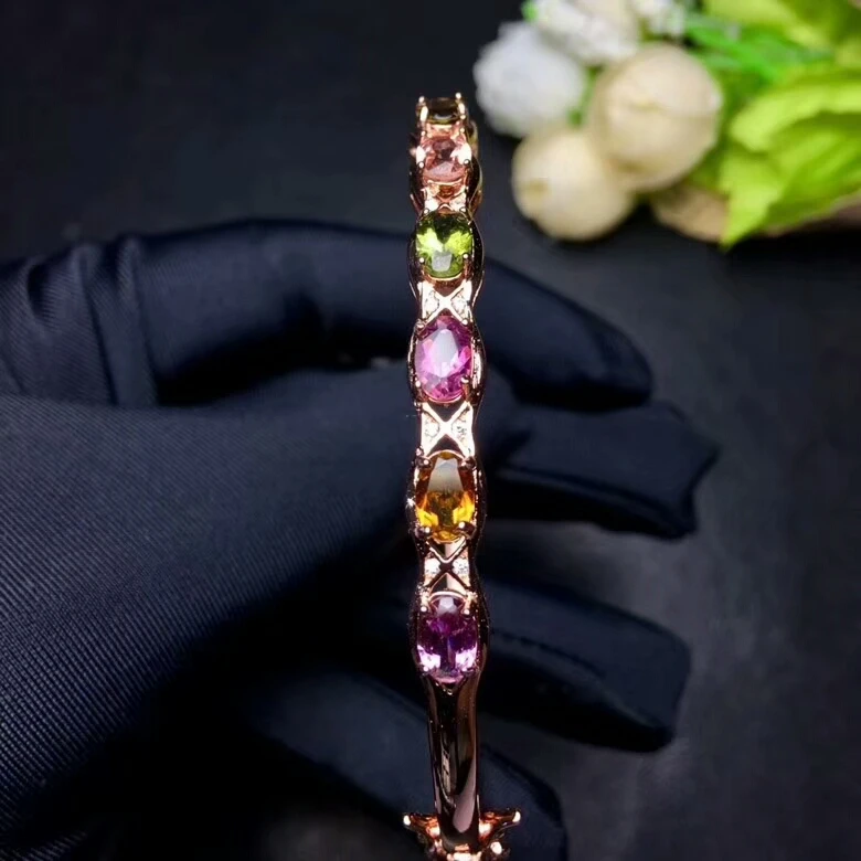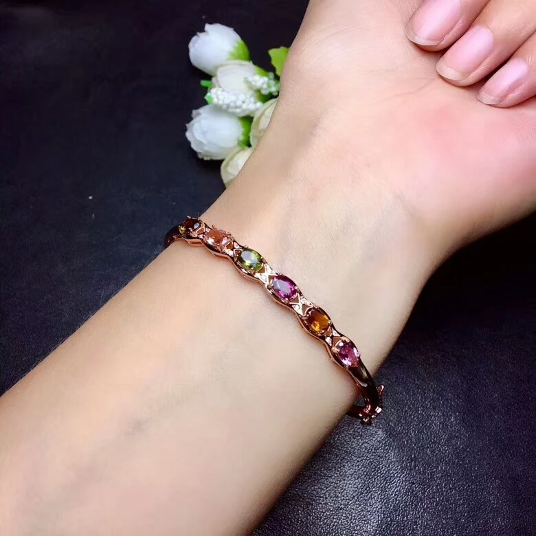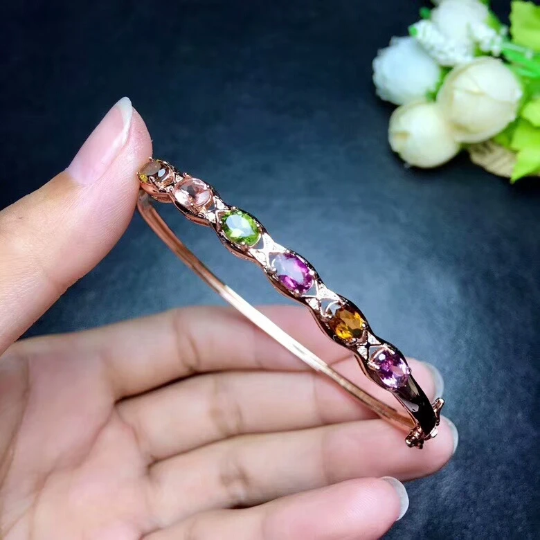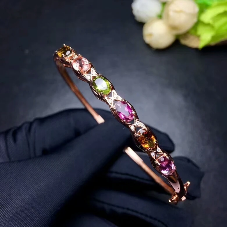 [MeiBaPJ] 925 Sterling Silver Natural Tourmaline Gemstone Bracelet for Women Fine Bangle Wedding Jewelry