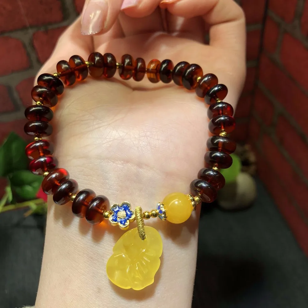 Natural Amber Bracelet Original Abacus Beads Women Unique Engagement Jewelry Genuine Baltic Amber Bracelet 11g