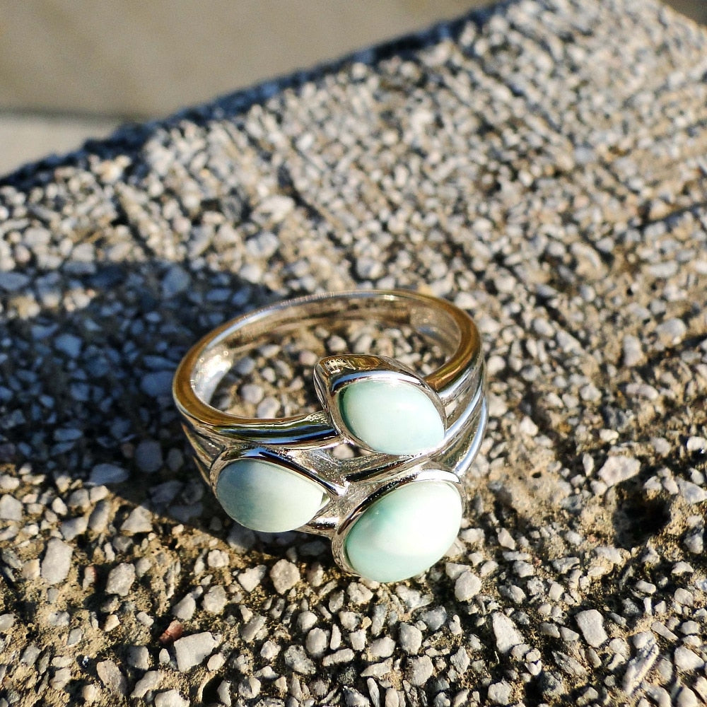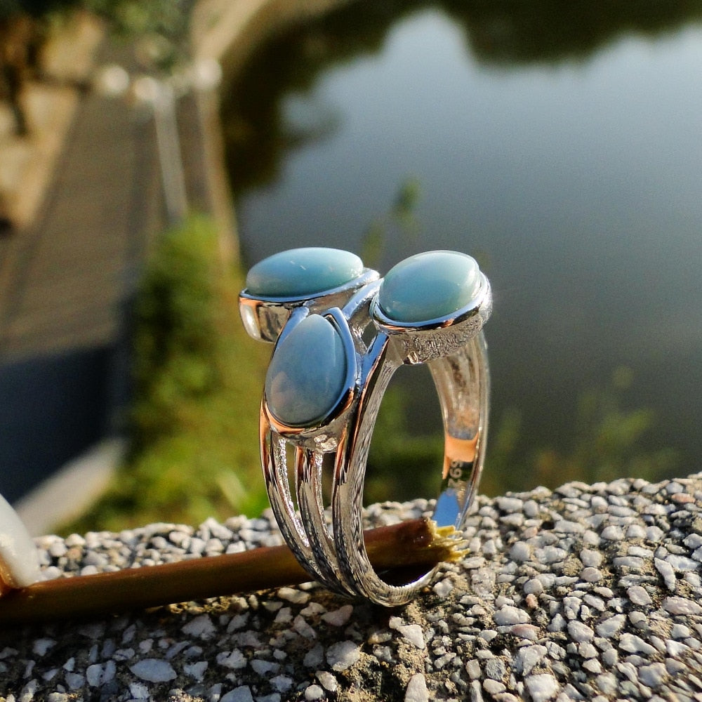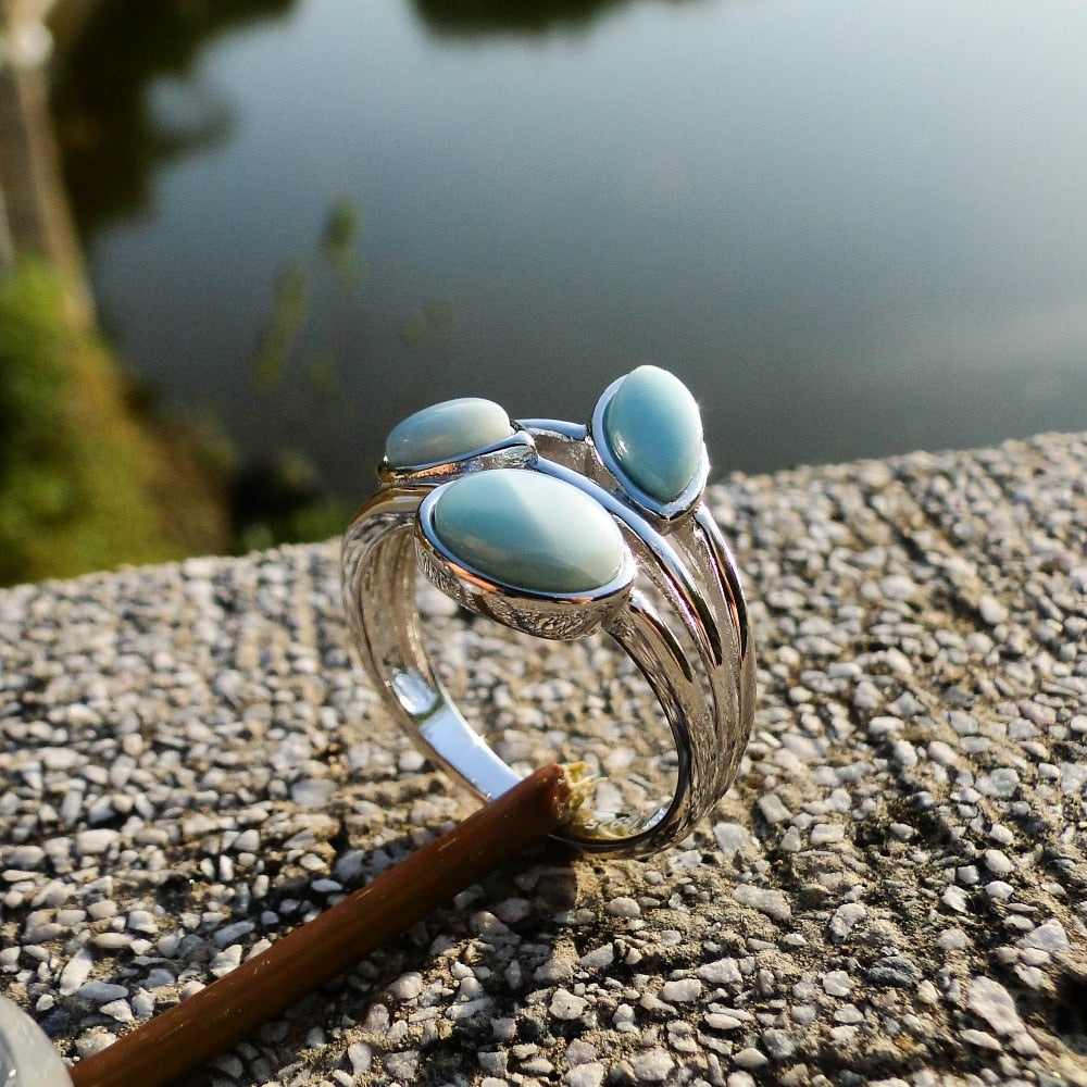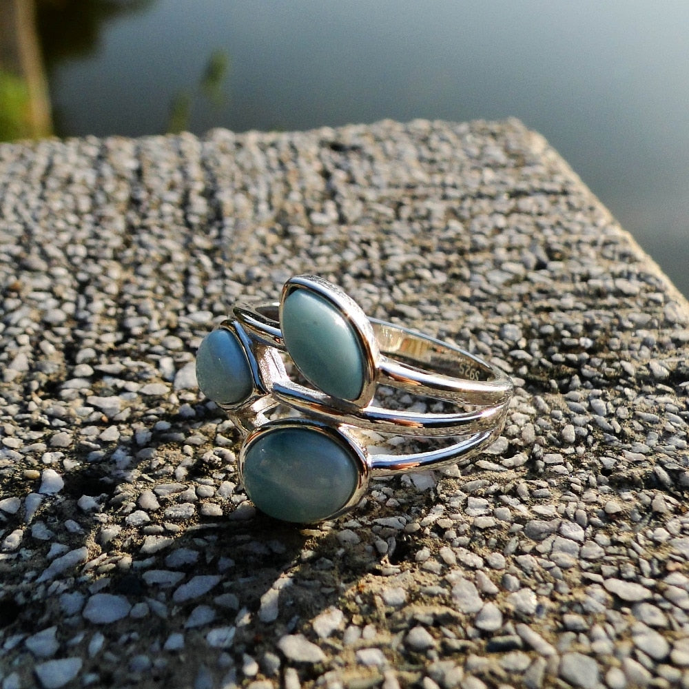 Natural Larimar Rings Antique Designs Oval Larimar Women Rings 925 Sterling Silver Jewelry Larimar Wedding Rings Size 6/7/8/9
