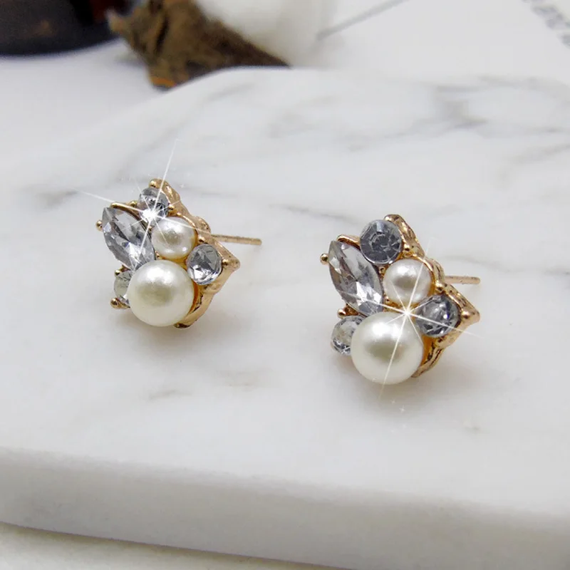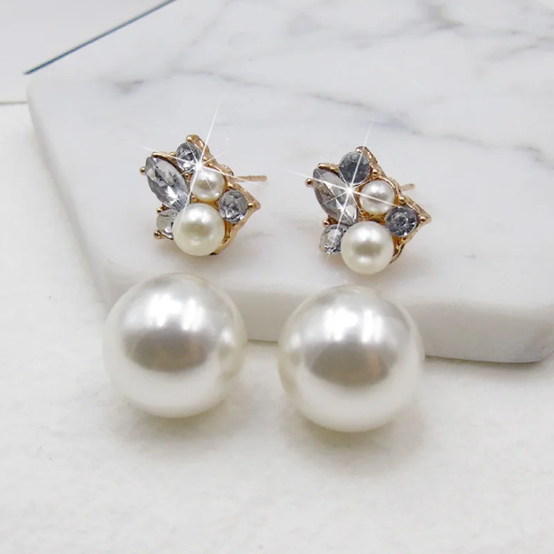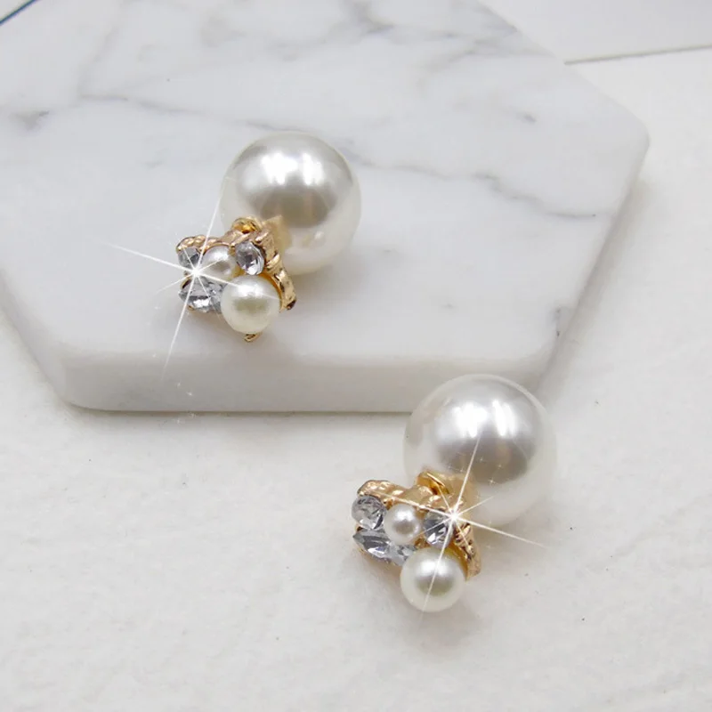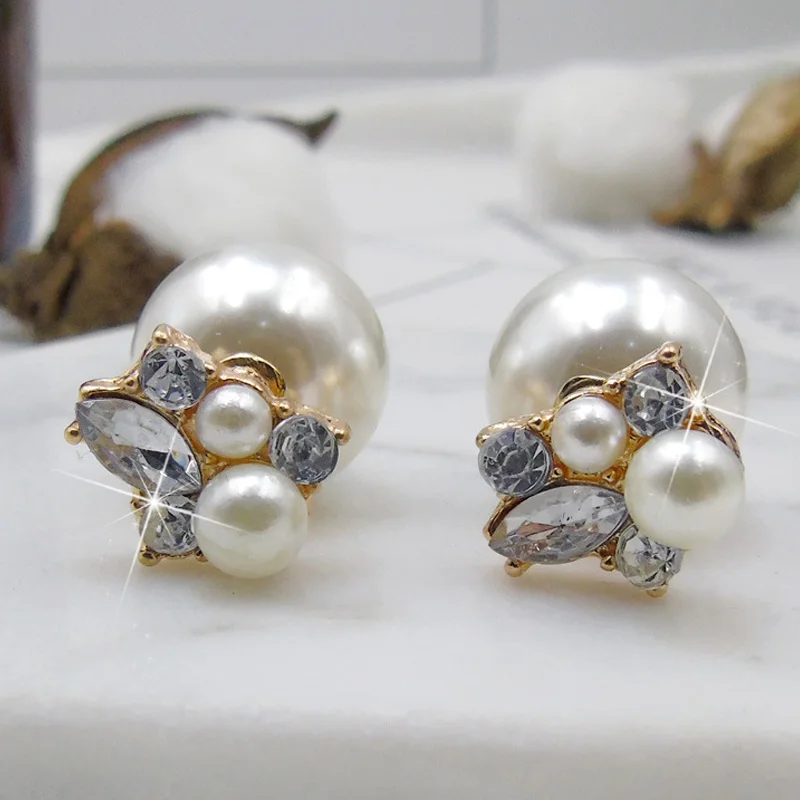 New Fashion Bridal Jewelry Luxury Crystal Pearl Double-sided Stud earring Charm Women's Party Wedding Jewelry Accessories