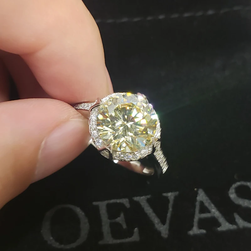 OEVAS 100% 925 Sterling Silver Wedding Rings For Women Sparkling 10mm High Carbon Diamond Wedding Party Bridal Fine Jewelry Gift