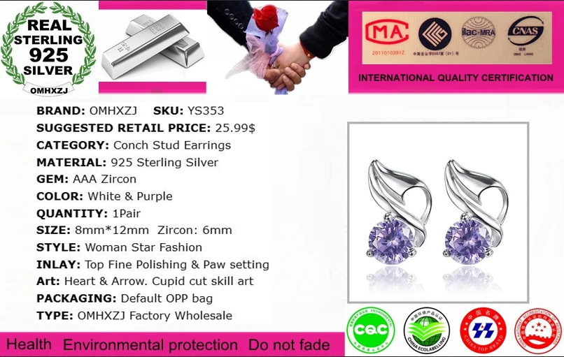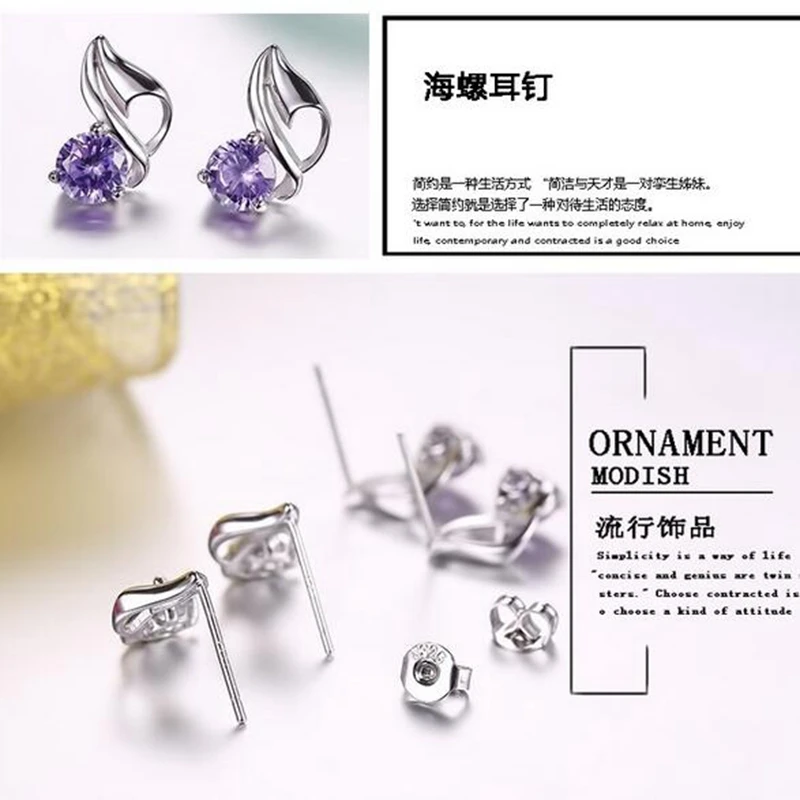 Wholesale Jewelry Sweet Fashion Woman Bride Girl Wedding Gift Conch AAA Zircon 925 Sterling Silver Stud Earrings YS353