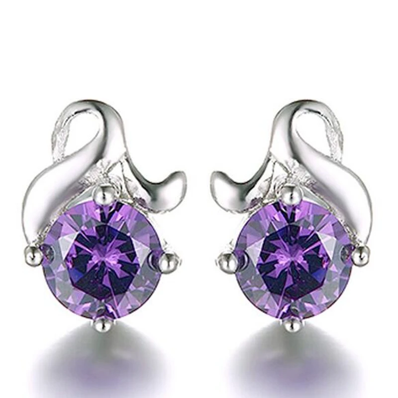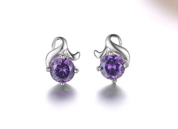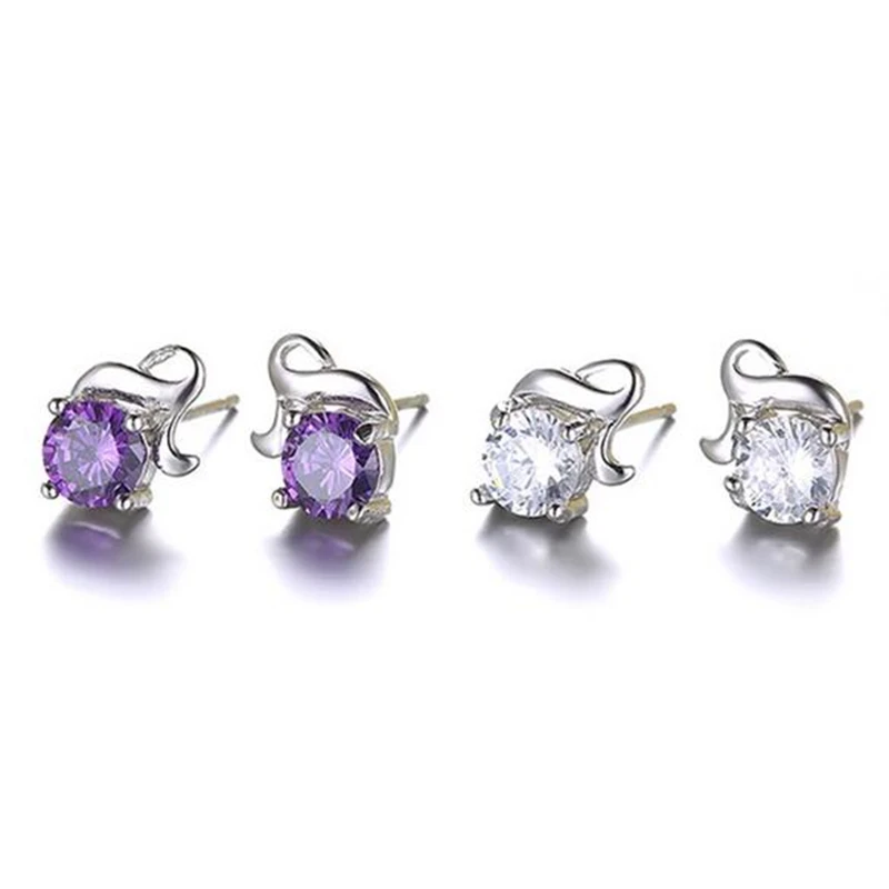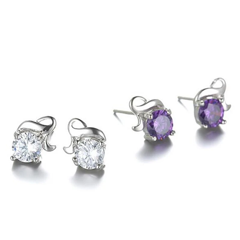 Wholesale Romantic Fashion Woman Wedding Gift White Purple Love Flower Zircon 925 Sterling Silver Stud Earrings YS354