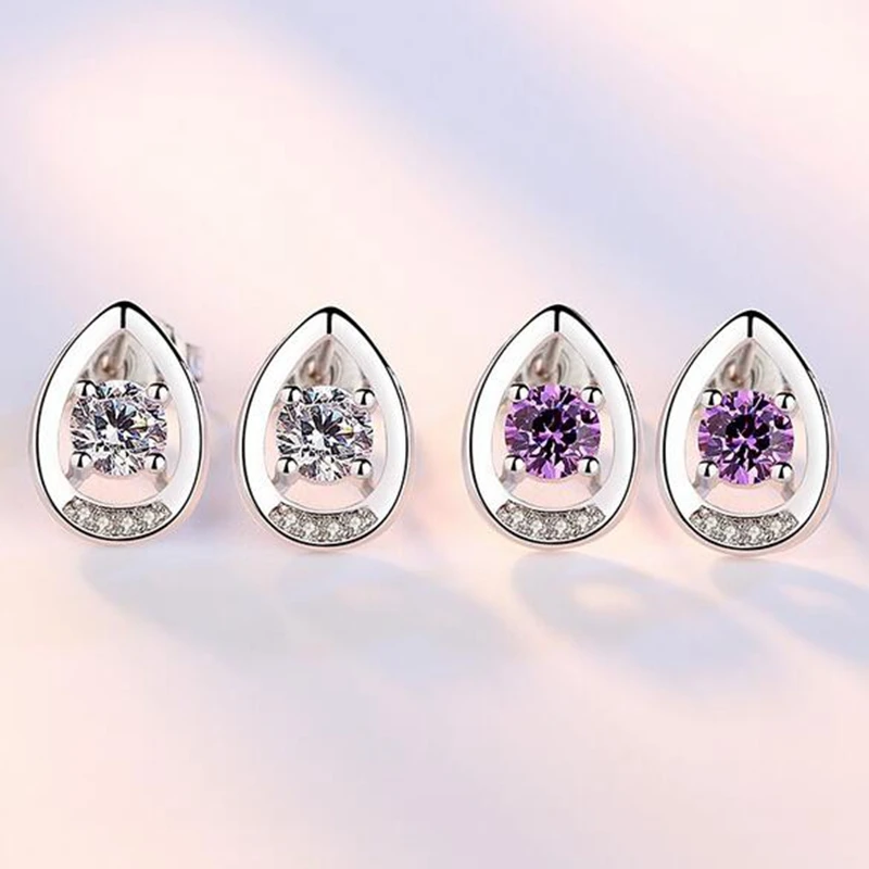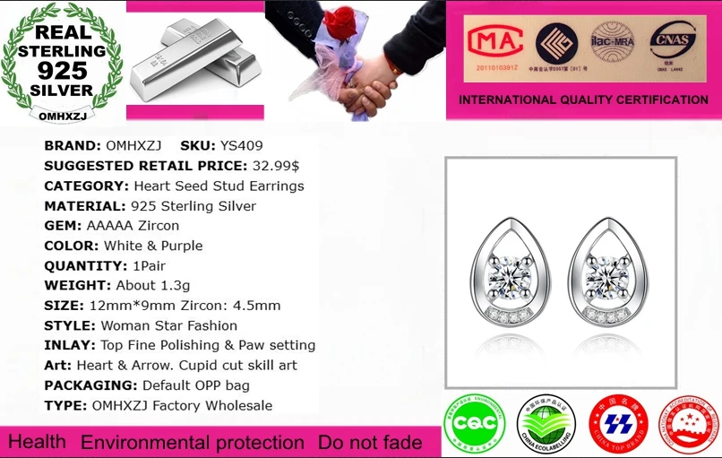 Wholesale Sweet Lovely Fashion Woman Girl Wedding Two Choice Heart Seed Zircon 925 Sterling Silver Stud Earrings YS409