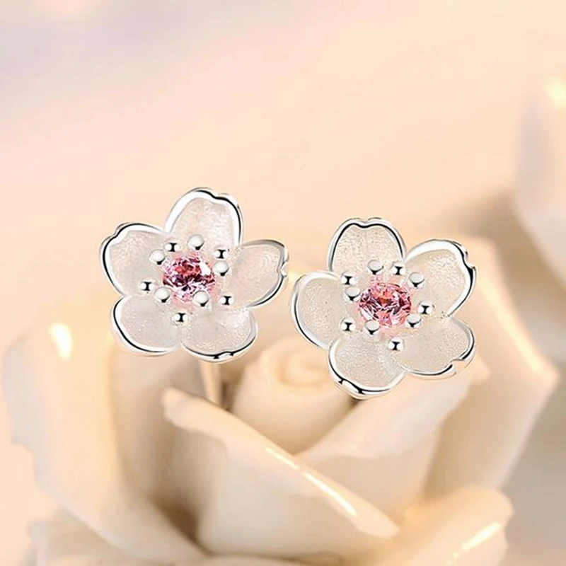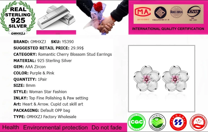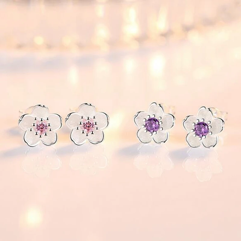 Wholesale Sweet Lovely Fashion Star Woman Girl Wedding Pink Purple Cherry Flower 925 Sterling Silver Stud Earrings YS390