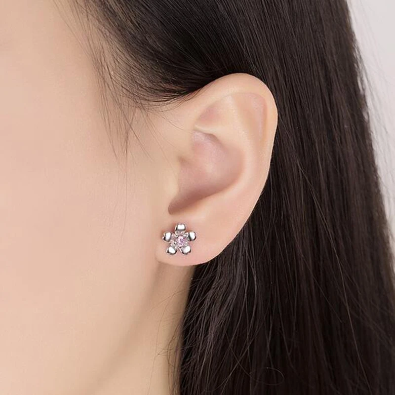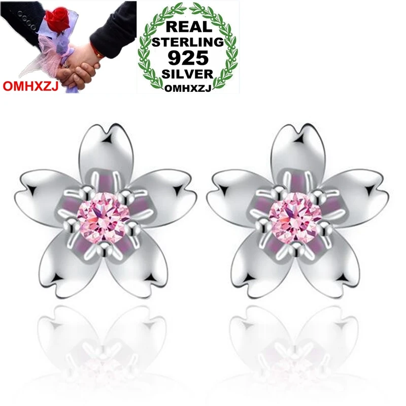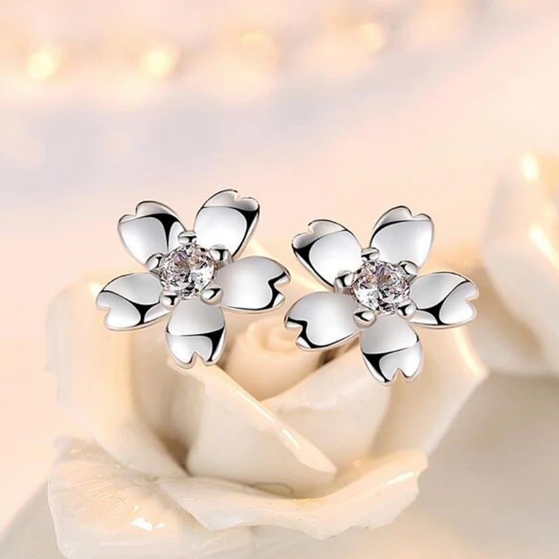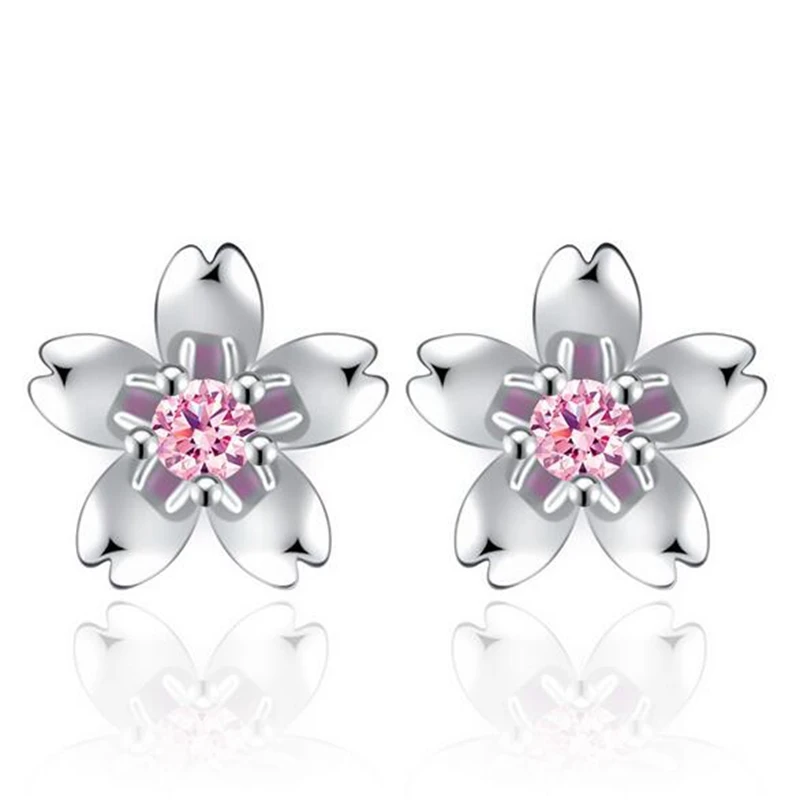 Wholesale Sweet Lovely Fashion Woman Girl Wedding Gift White Pink Cherry Blossom 925 Sterling Silver Stud Earrings YS414