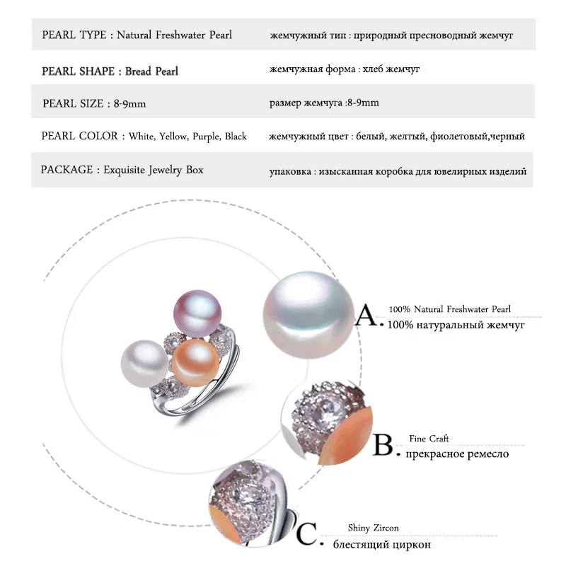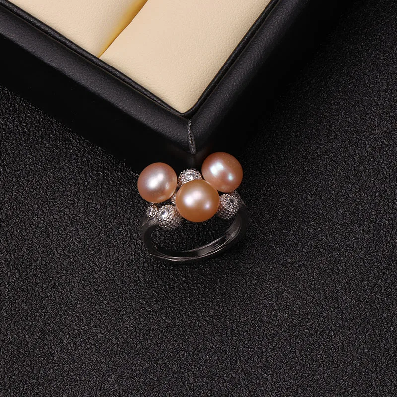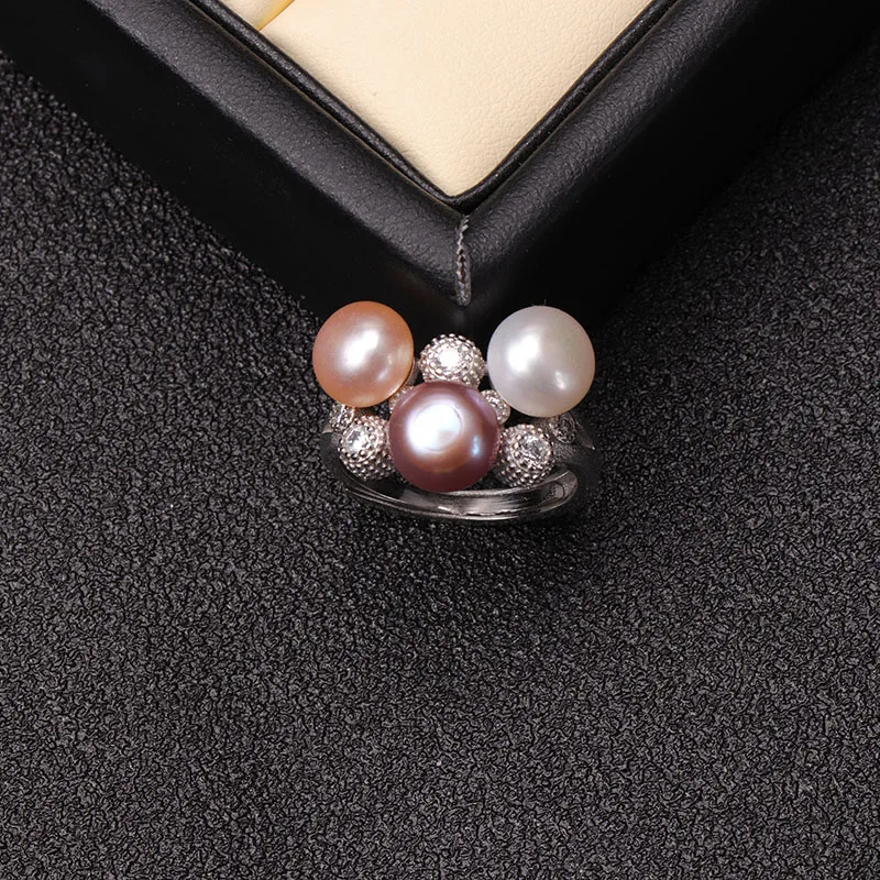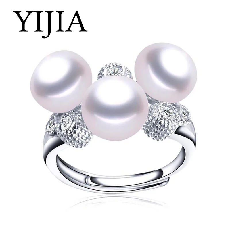 Pearl Ring Pearl 925 Sterling Sliver Wedding Ring Triple Pearls Women's Rings 5Colors Fashion Jewelry Engagement Ring
