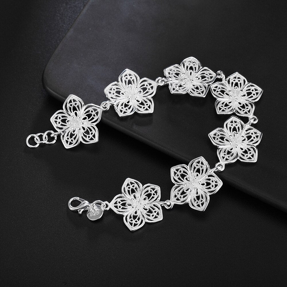 Pretty designer fine flowers chain 925 sterling silver Bracelet for women charms jewelry Wedding party lady gifts