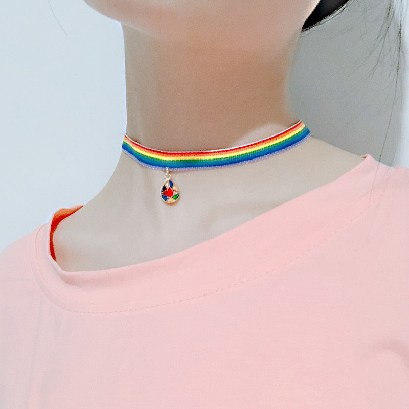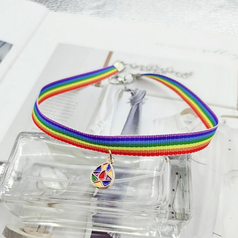 Pride Rainbow LGBT Choker Necklace for Couple Lover Clavicle Chain Women Moon Water Drop Pendant Wedding Party Jewelry Gift
