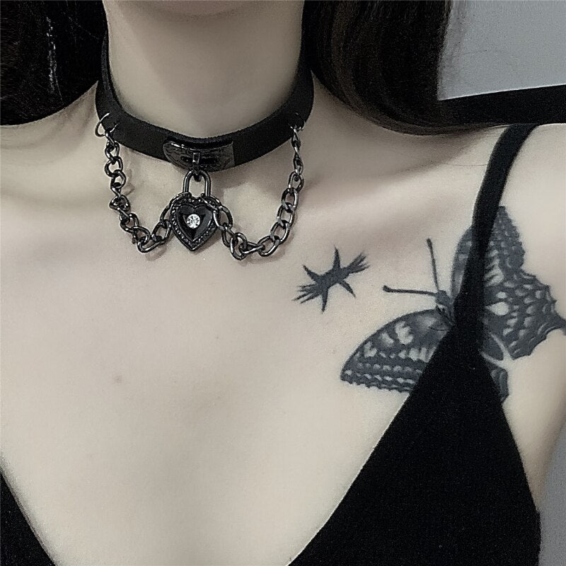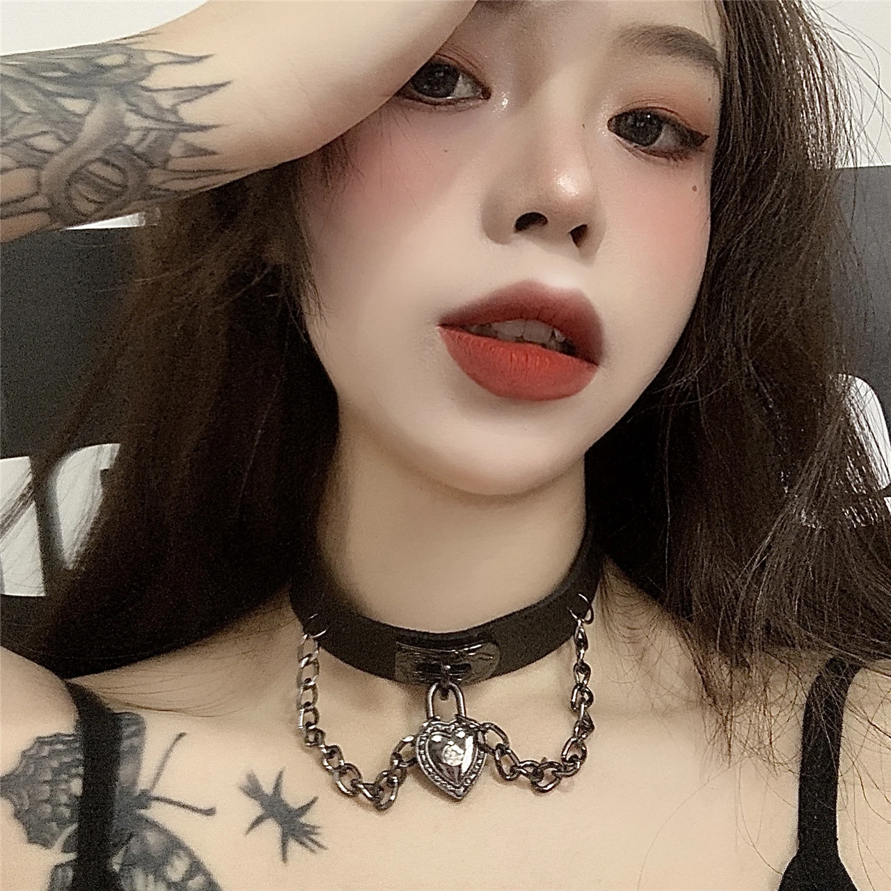 PU Leather Heart Choker Necklace Women Chocker Necklaces Punk Statement Jewelry Collier Wedding Bride Jewelry Gift