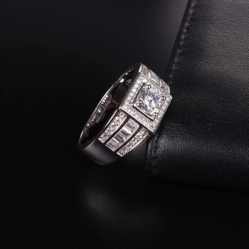 Real Solid 100% 925 Sterling silver Rings Wedding Jewelry for Men Luxury Round cut 1.2ct Simulated Diamond Ring US Size 8-13
