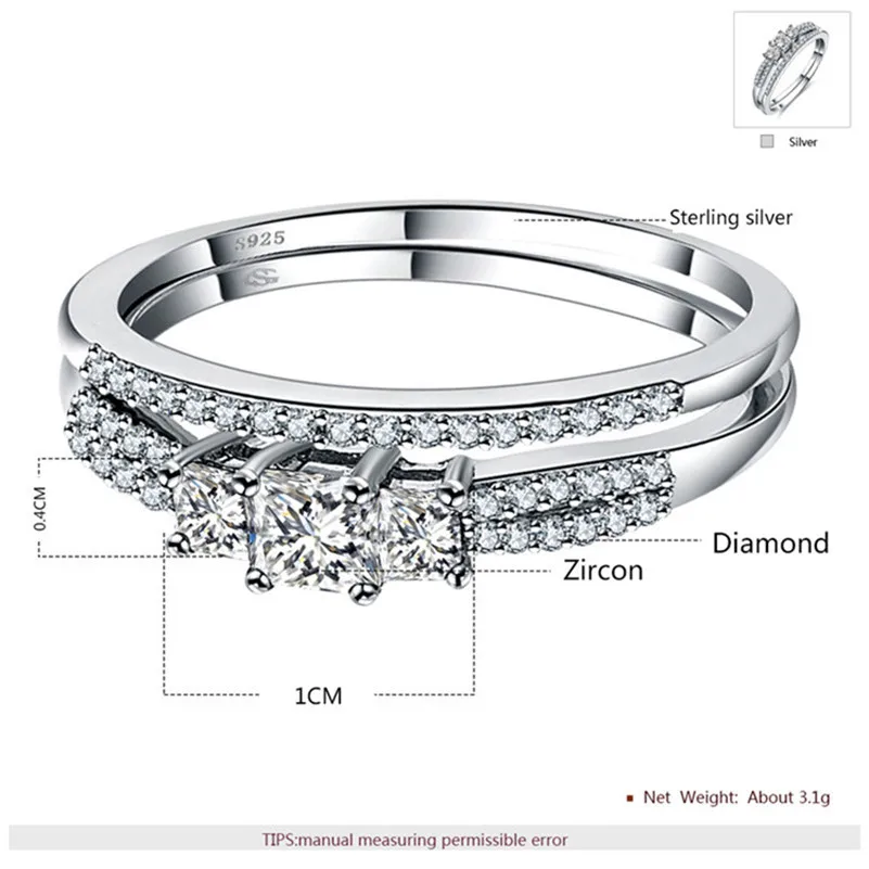 Rings For Women S925 Sterling Silver Fine Jewelry Olive Green Square Stone Cubic Zirconia Double Ring Wedding Bride Accessories