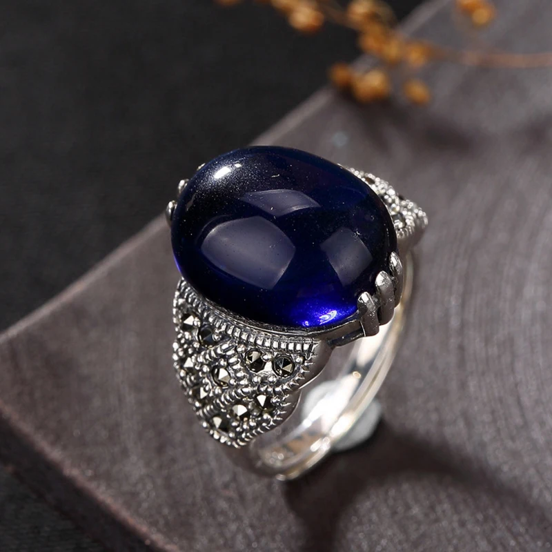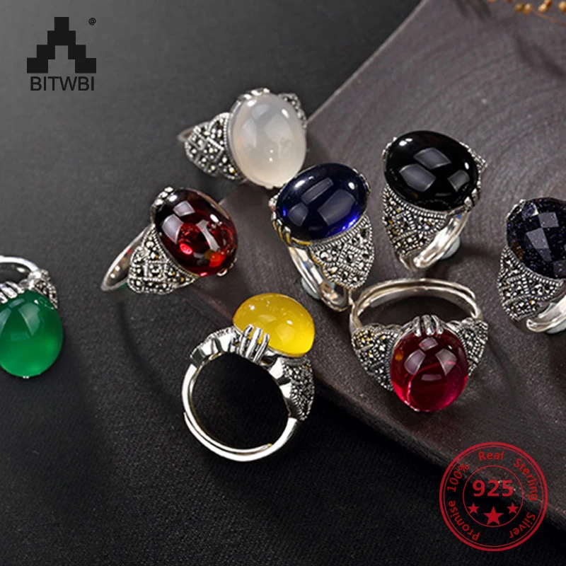 S925 Sterling Sliver Retro Fashion Natural Crystal Ring With Various Colors High-end Opening Engagement Ring Jewelry for Women