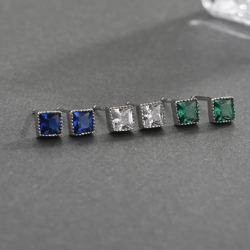 925 Sterling Silver Stud Earrings for Women Sparkling Spinel Geometric Stud Earrings Party Wedding Gift with box