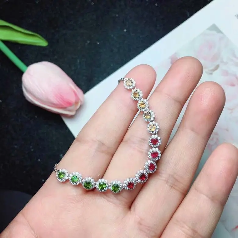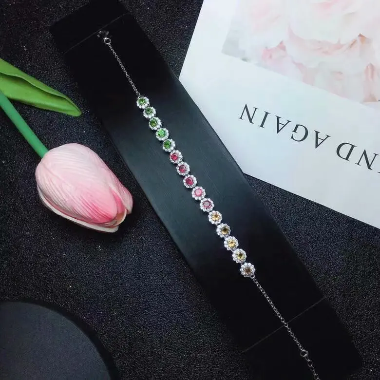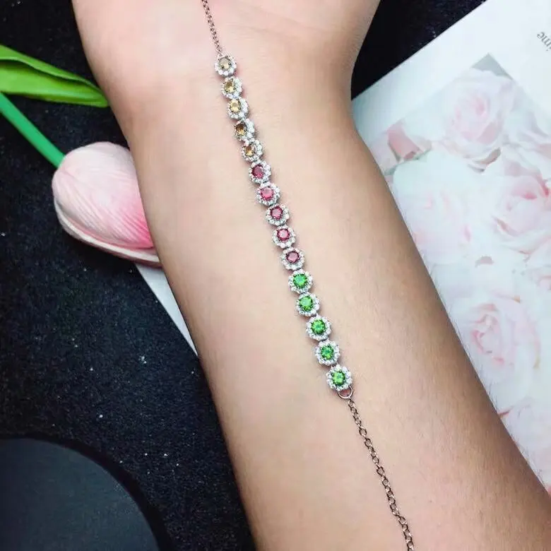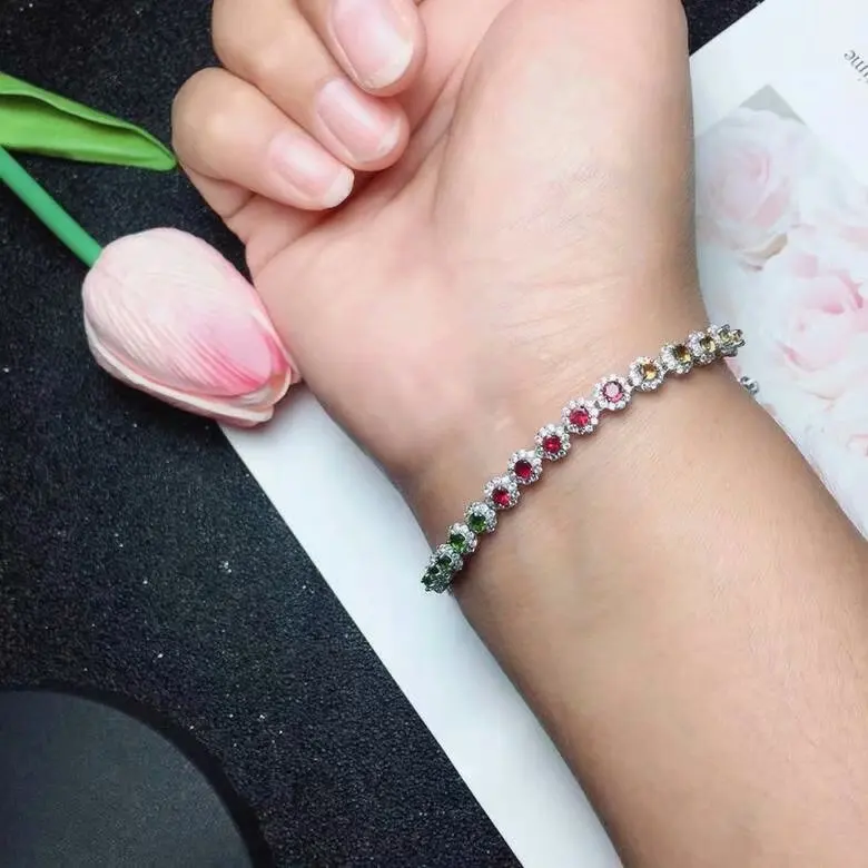 925 sterling silver Natural tourmaline bracelets new fine Jewelry women wedding trendy party ll030301agx