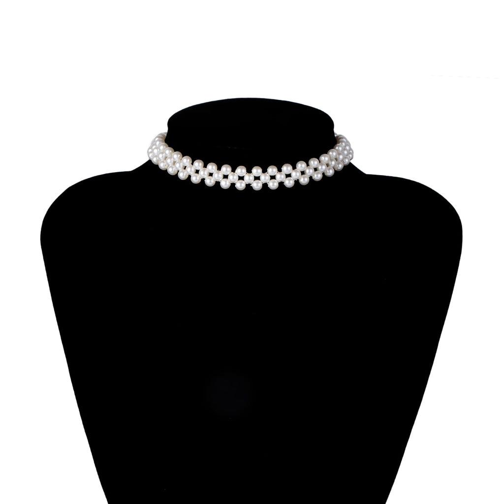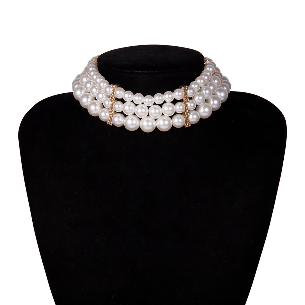 SHIXIN Layered Short Pearl Choker Necklace for Women White Beads Necklace Wedding Jewelry on Neck Lady Pearl Choker Collar Gifts