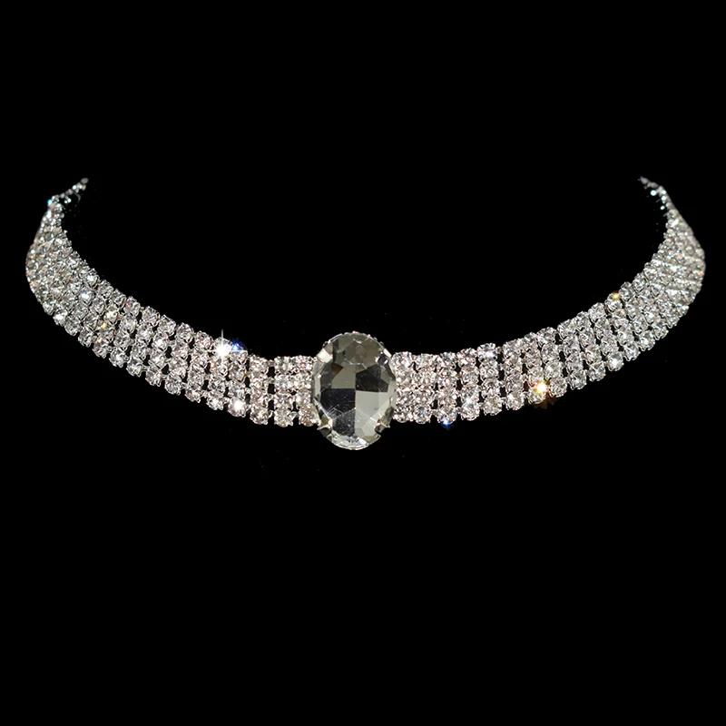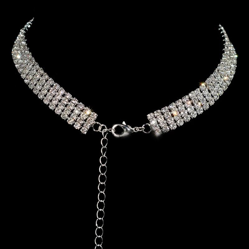 Silver Plated Crystal Collar Chain Choker Necklace Bridal For Women Wedding Party Diamante Rhinestone Choker Jewelry Gifts