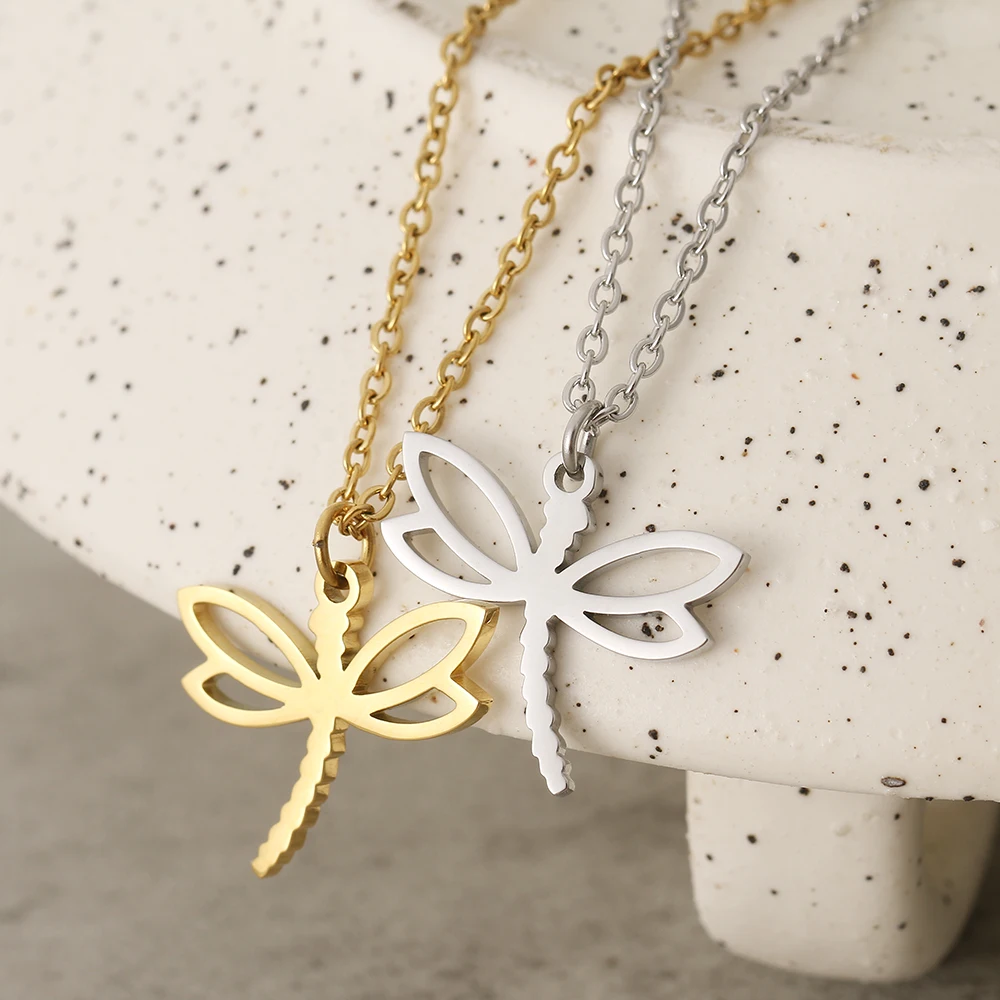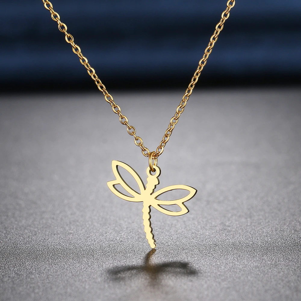 Stainless Steel Necklaces Big Winged Dragonfly Pendants Chain Choker Jewellery Necklace For Women Jewelry Wedding Gifts
