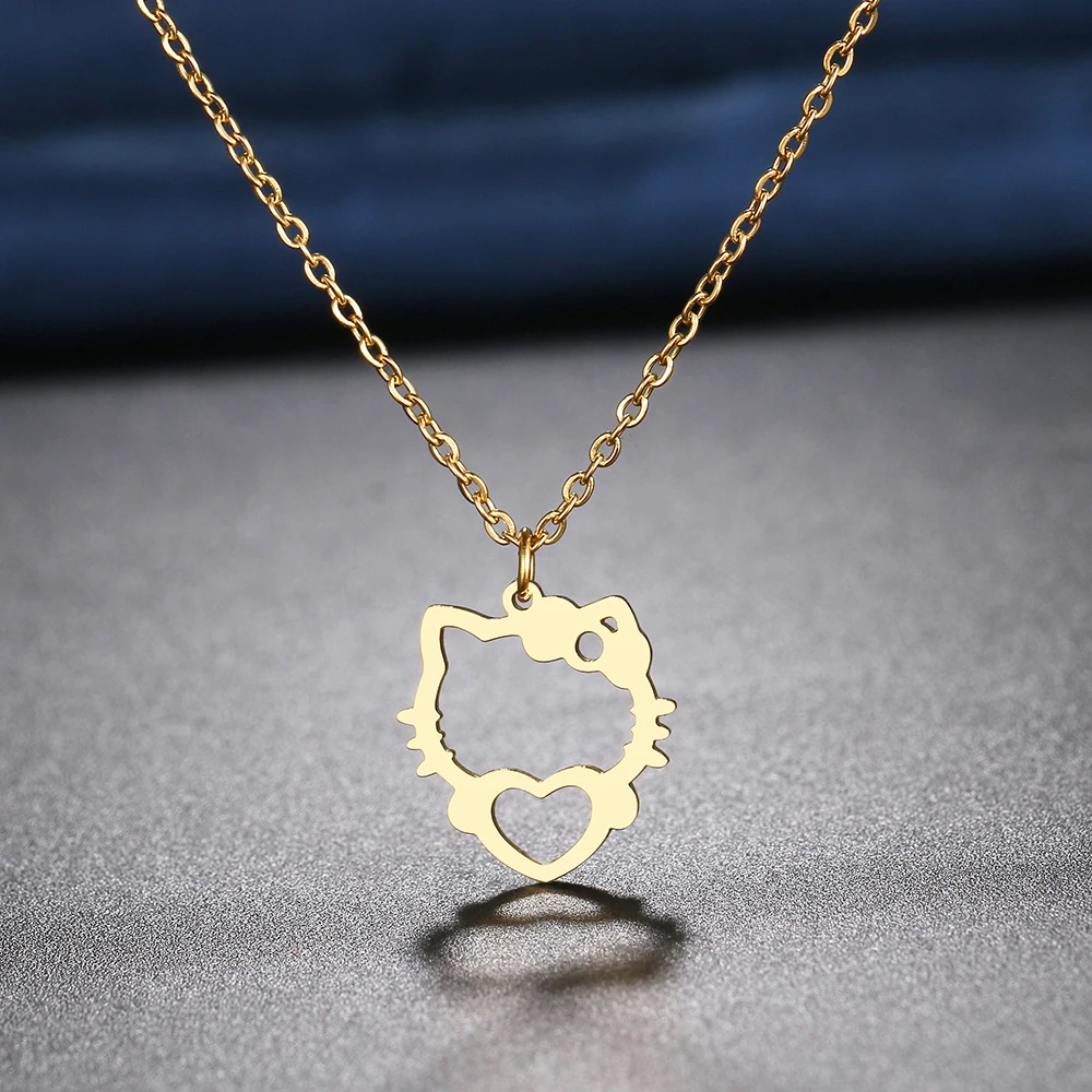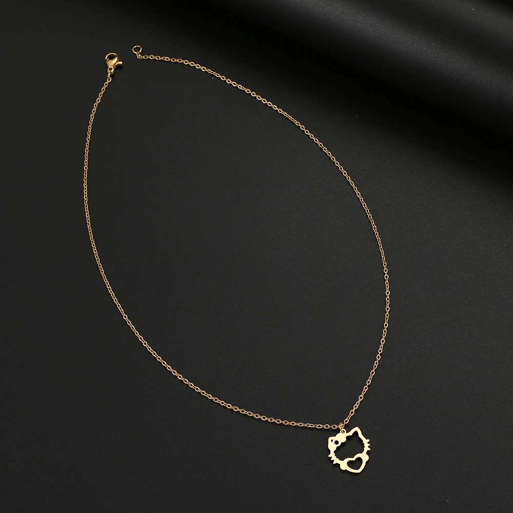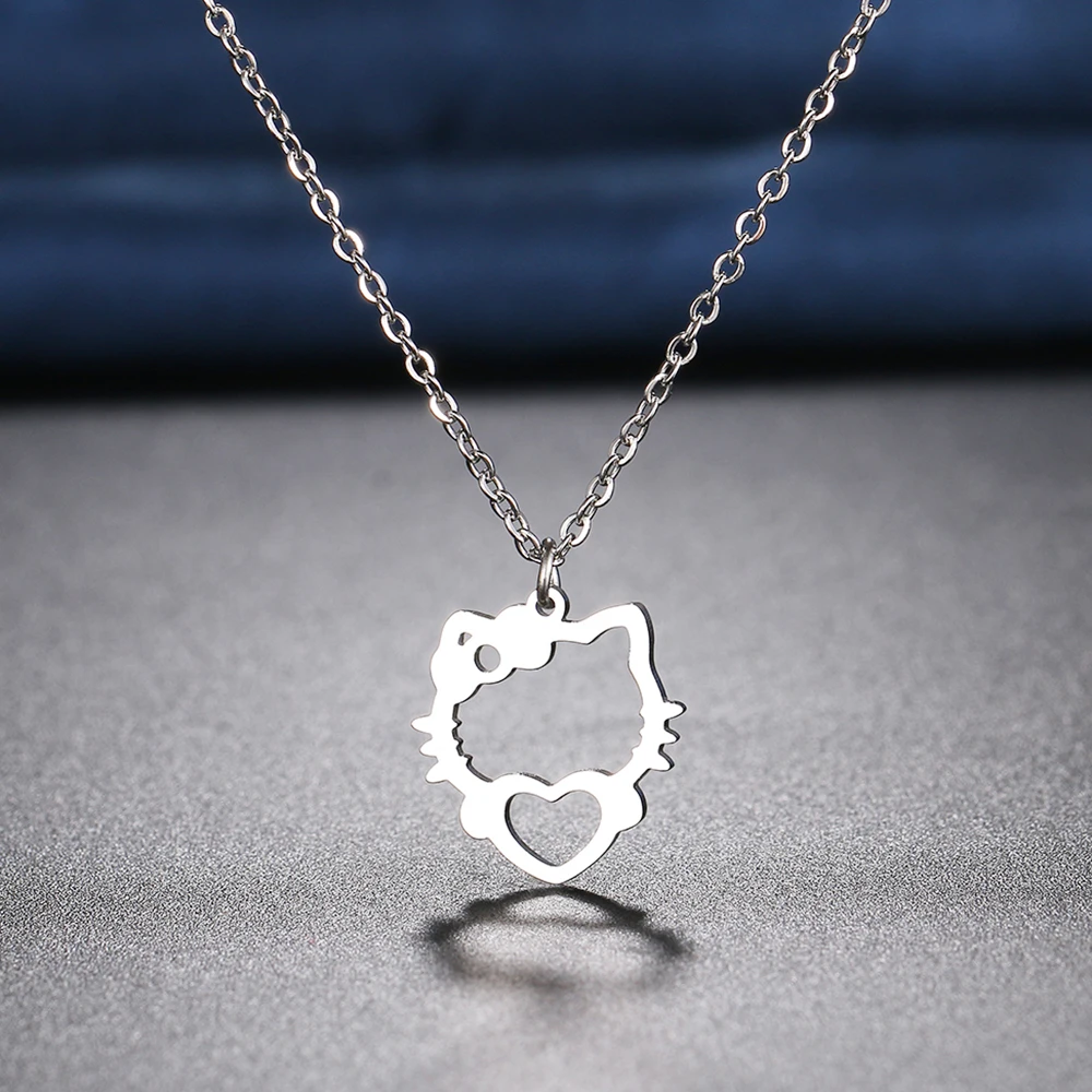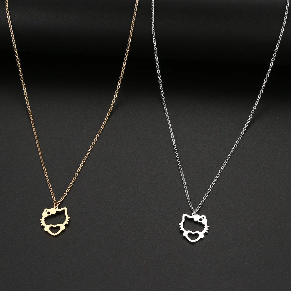 Stainless Steel Necklaces Hollow Kitten Bow Pendants Chain Choker Jewellery Necklace For Women Jewelry Wedding Gifts NEW