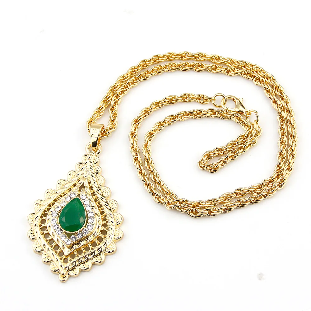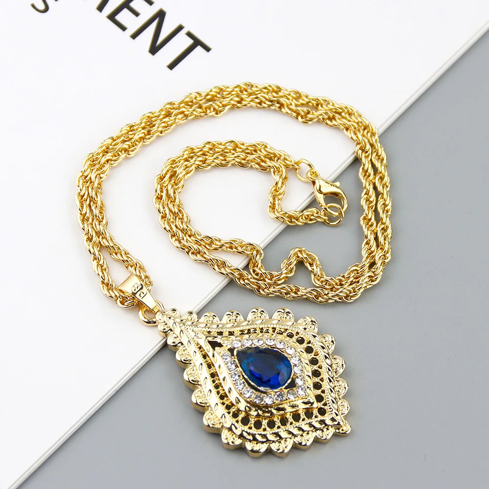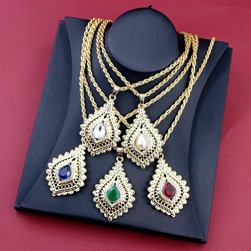 Sunspicems 2021 Chic Morocco Women Crystal Pendant Necklace Gold Color Rhinestone Arabic Ethnic Banquet Wedding Jewelry Gift