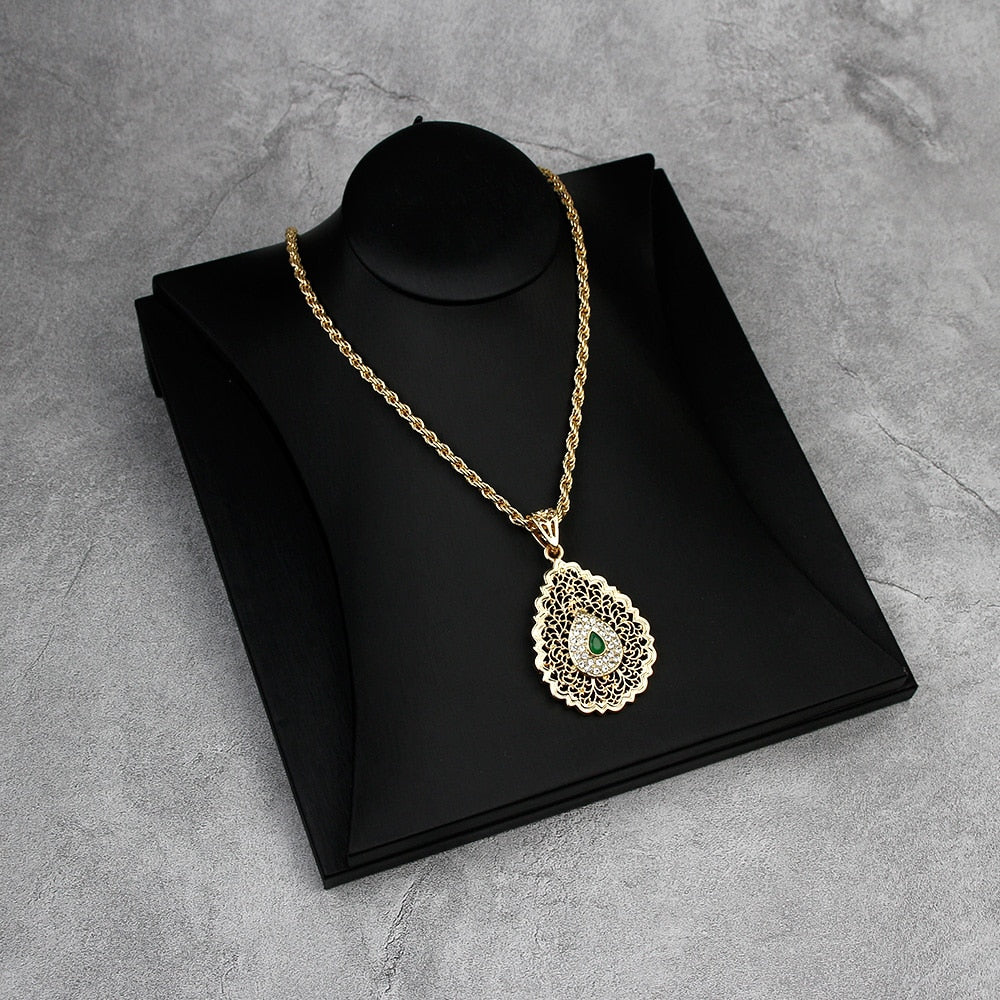 Sunspicems 2021 Morocco Women Gold Pendant Necklace Hollow Metal Arabesque leaf Long Chain Ethnic Wedding Hip Hop Jewelry