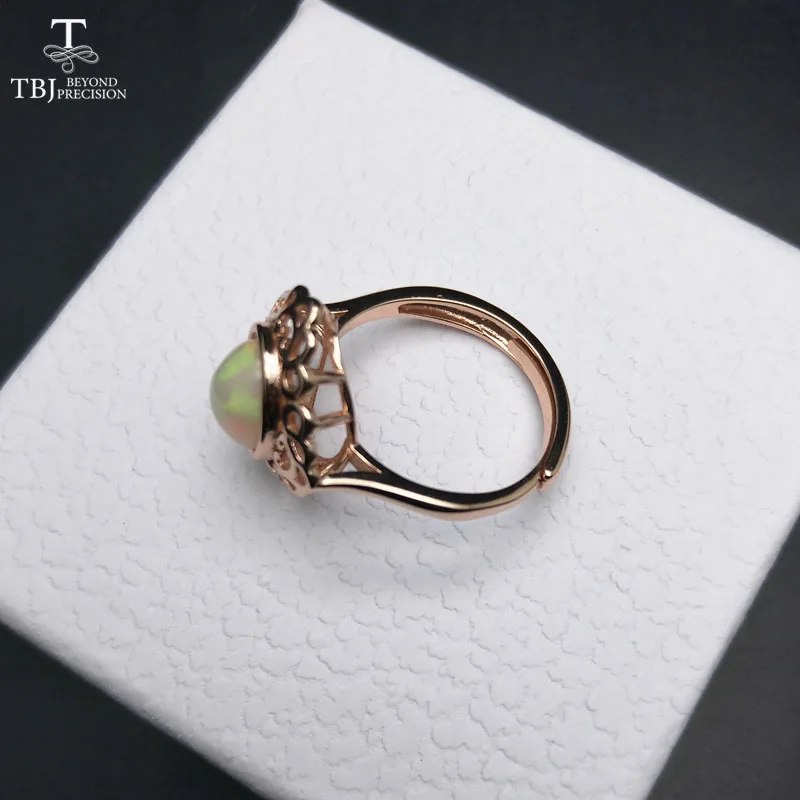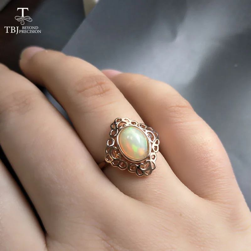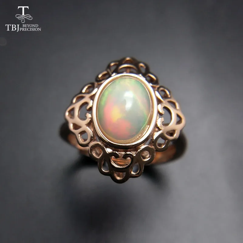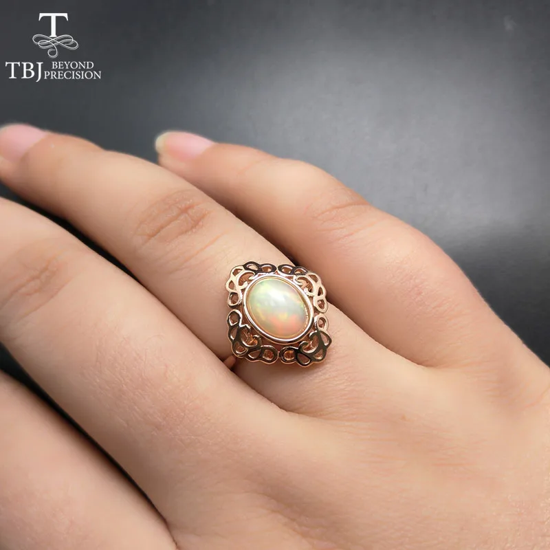 TBJ, 100% Natural Ethiopian Rainbow Opal oval 7*9mm Rings Engagement Ring in 925 sterling silver gemstone Jewelry Women Wedding
