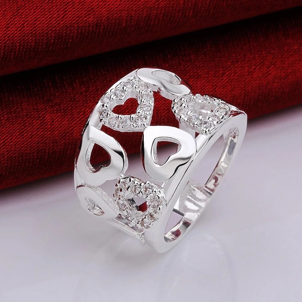 trend 925 Sterling Silver wide fine crystal Pretty romantic heart Rings For Women Party wedding Jewelry Gifts