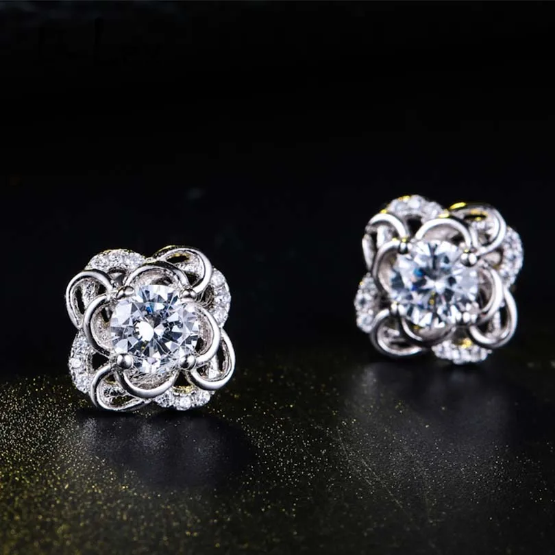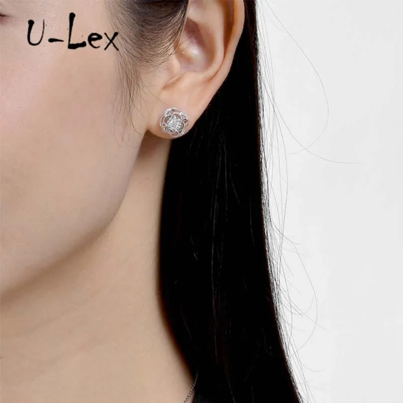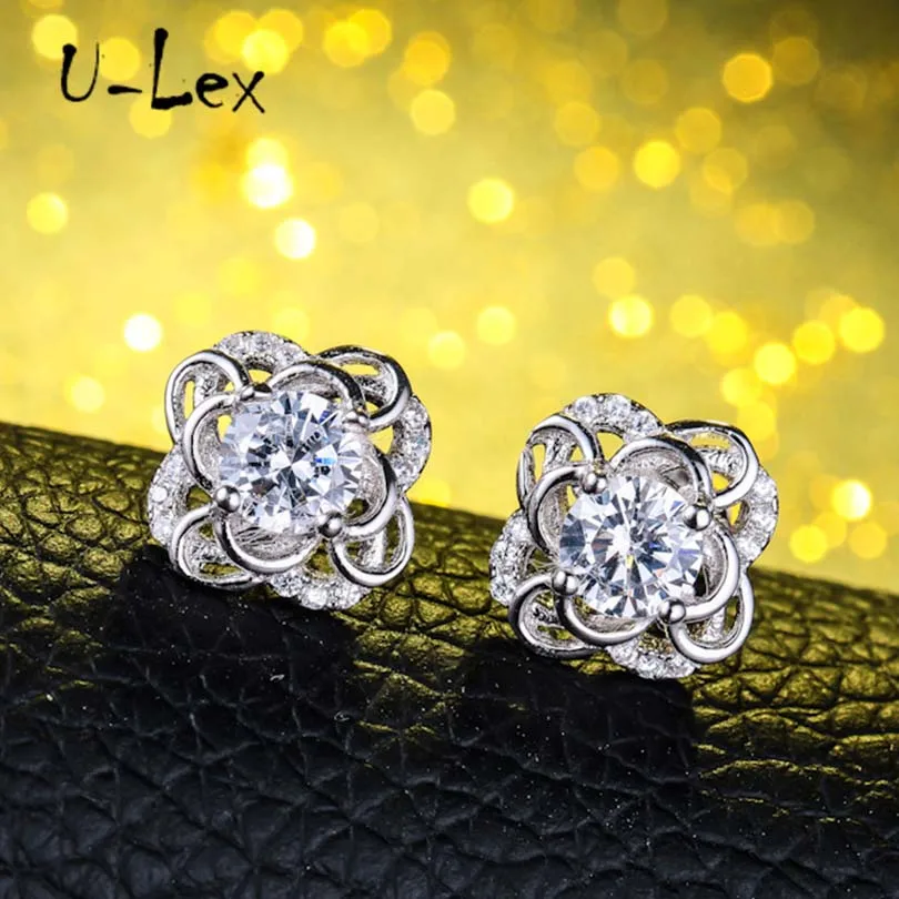 U-Lex Stud Earrings 925 Sterling Silver Whole AAA Cubic Zirconia Stone Stud For Wedding Elegant Jewelry Girls earrings ED305