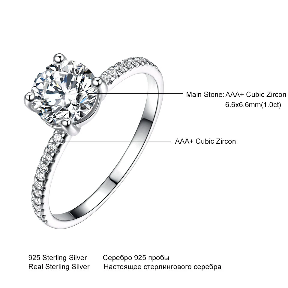 925 Silver Sterling Luxury Bridal Cubic Zircon Rings For Women Solitaire Engagement Wedding Party Brand Fine Jewelry
