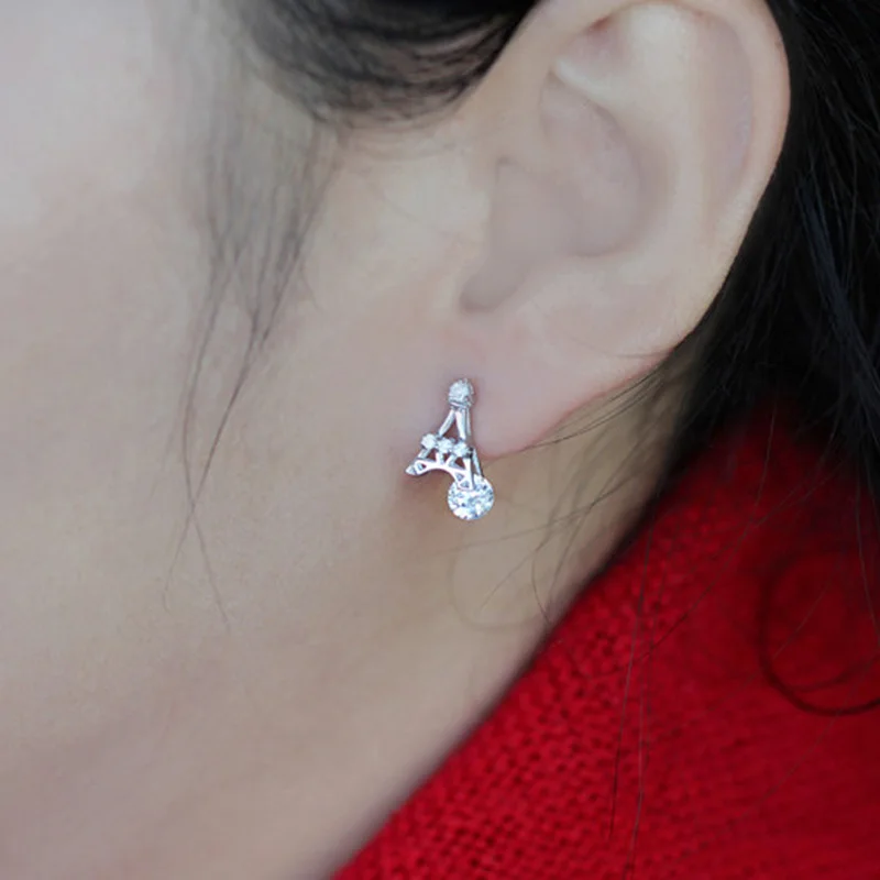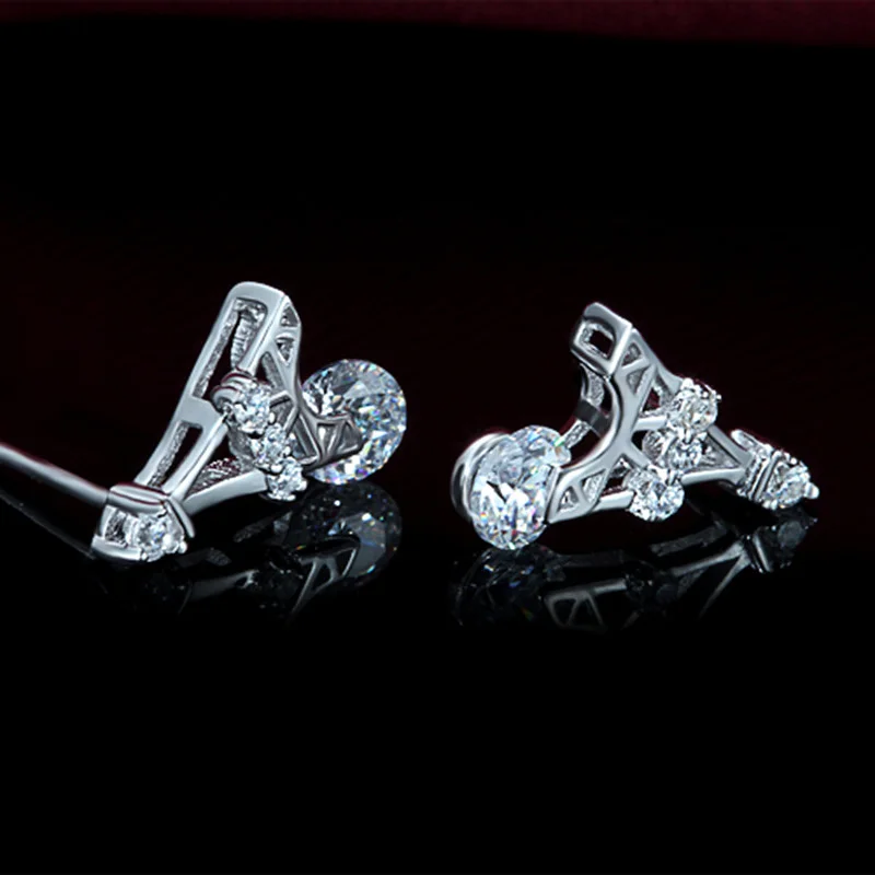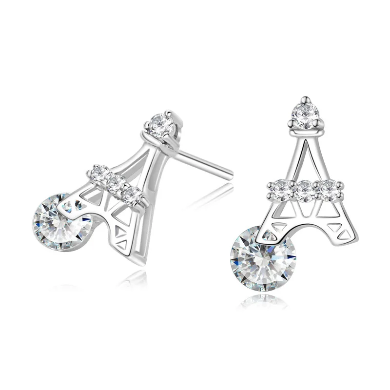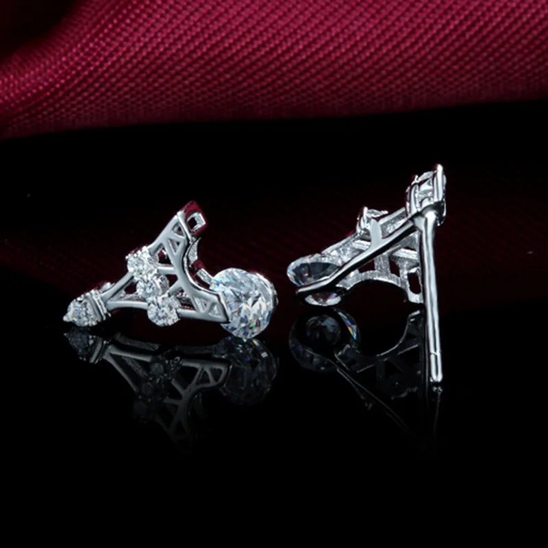 925 Sterling Silver AAA Cubic Zirconia 3D Mini Eiffel Tower Stud Earrings For Women Engagement Earrings Fashion Jewelry