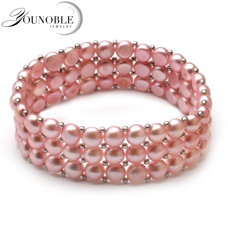 Wedding 100% Natural Pearl Bracelet Women,Bracelet With Pearl Jewelry de perle 3 rows bracelet adjustable